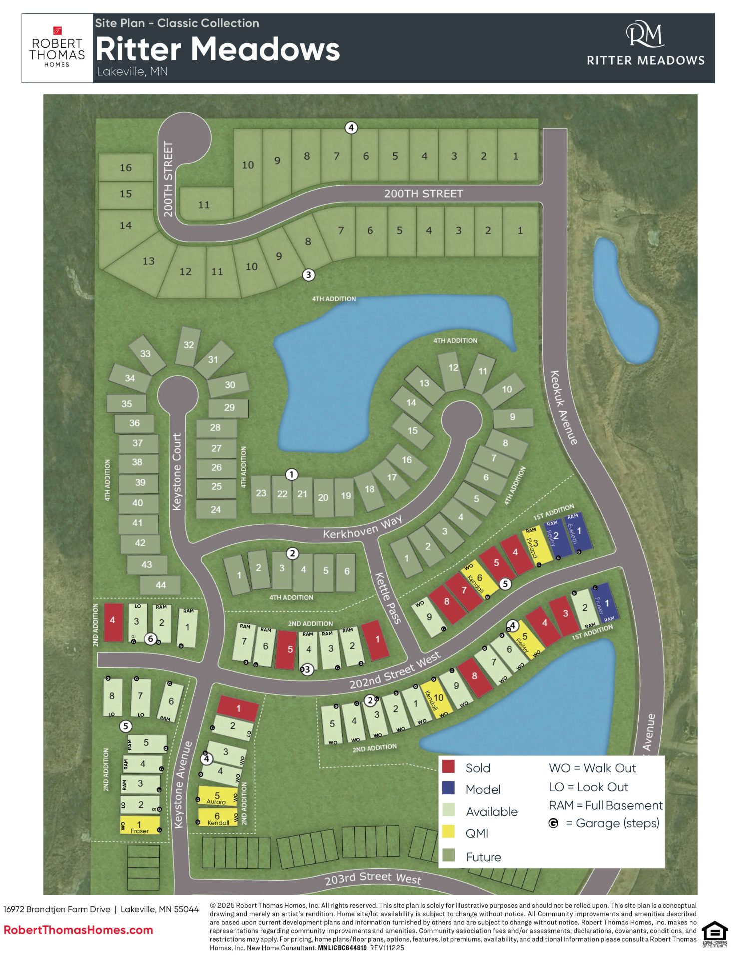© 2025 Robert Thomas Homes, Inc. All rights reserved. Prices, floor plans, home elevations, options, upgrades, specifications, incentives, promotions, and availability are subject to change without notice. Finished square footage and dimensions are approximate and subject to change without notice. “Starting from” refers to the base price or starting price of a home plan/floorplan not including optional home elevations, options, upgrades, or lot premiums. “Starts at” refers to the lowest base price or starting price available within a collection of home plans/floorplans in a community not including optional home elevations, options, upgrades, or lot premiums. Models, photos, virtual tours, video tours, and/or illustrations may not depict actual home plan/floorplan configuration and/or details and may show certain options and upgrades not included in the base price or starting price of the home plan/floorplan. Model homes featured may show model staging, furniture, and accessories that are not included in the purchase of a home. Community improvements and amenities described are based upon current development plans and information furnished by others and are subject to change without notice. Robert Thomas Homes, Inc. makes no representations regarding community improvements and amenities. Community association fees and/or assessments, declarations, covenants, conditions, and restrictions may apply. Promotions and incentives may require the use of a certain lender that is an affiliate of Robert Thomas Homes, Inc. Floor plans and home elevations are used by permission by Robert Thomas Homes, Inc. and are protected by U.S. copyright laws. Please consult a Robert Thomas Homes, Inc. New Home Consultant for additional information. MN LIC BC644819