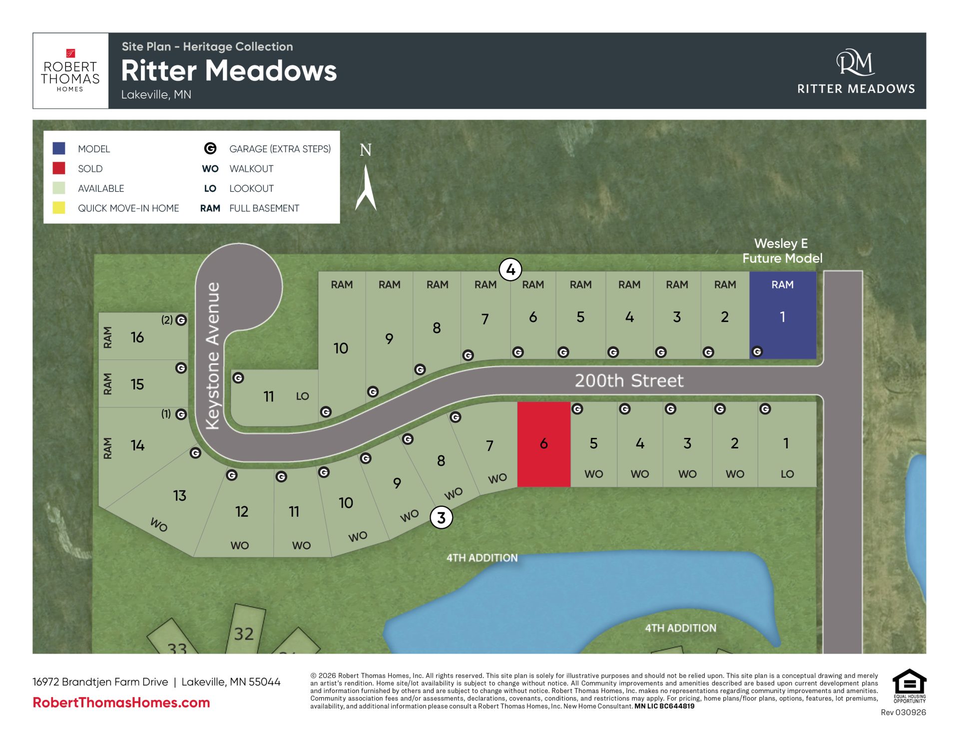© 2026 Robert Thomas Homes, Inc. All rights reserved. Prices, floor plans, home elevations, options, upgrades, specifications, incentives, promotions, and availability are subject to change without notice. Finished square footage and dimensions are approximate and subject to change without notice. “Starting from” refers to the base price or starting price of a home plan/floorplan not including optional home elevations, options, upgrades, or lot premiums. “Starts at” refers to the lowest base price or starting price available within a collection of home plans/floorplans in a community not including optional home elevations, options, upgrades, or lot premiums. Models, photos, virtual tours, video tours, and/or illustrations may not depict actual home plan/floorplan configuration and/or details and may show certain options and upgrades not included in the base price or starting price of the home plan/floorplan. Model homes featured may show model staging, furniture, and accessories that are not included in the purchase of a home. Community improvements and amenities described are based upon current development plans and information furnished by others and are subject to change without notice. Robert Thomas Homes, Inc. makes no representations regarding community improvements and amenities. Community association fees and/or assessments, declarations, covenants, conditions, and restrictions may apply. Promotions and incentives may require the use of a certain lender that is an affiliate of Robert Thomas Homes, Inc. Floor plans and home elevations are used by permission by Robert Thomas Homes, Inc. and are protected by U.S. copyright laws. Please consult a Robert Thomas Homes, Inc. New Home Consultant for additional information. MN LIC BC644819