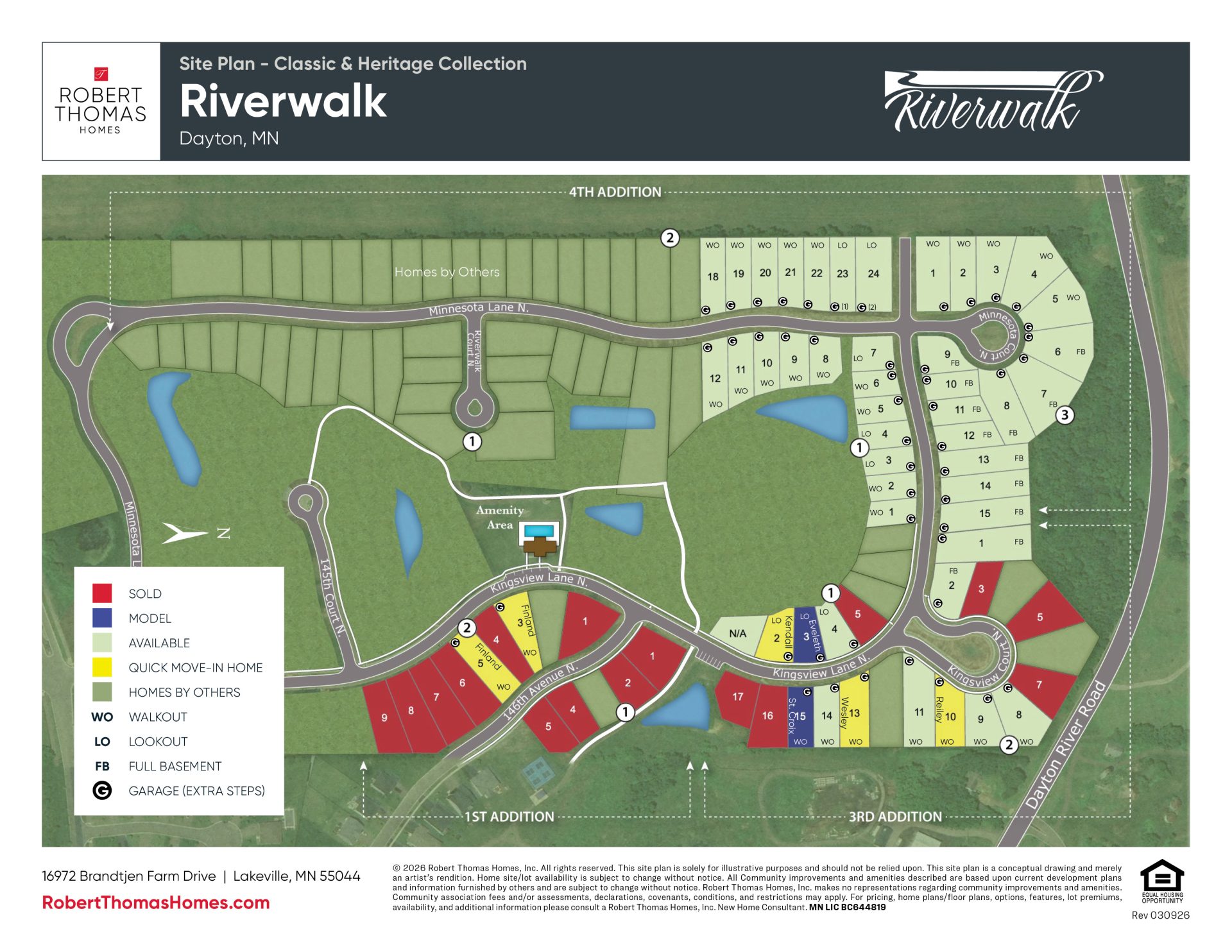 Riverwalk is a beautiful master-planned neighborhood in the peaceful community of Dayton, MN. The thoughtfully designed homesites offer beautiful vistas of natural wetlands and mature trees. Residents can take advantage of the miles of walking trails and a community clubhouse with an outdoor pool.