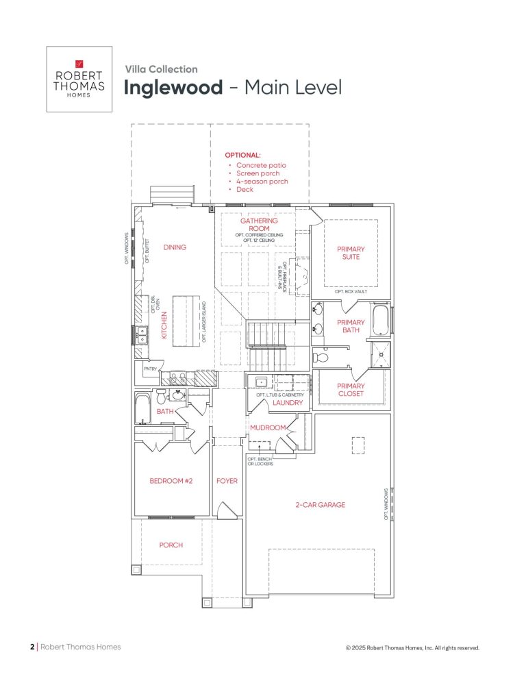 - Light-filled gathering room with optional fireplace, and optional coffered ceiling