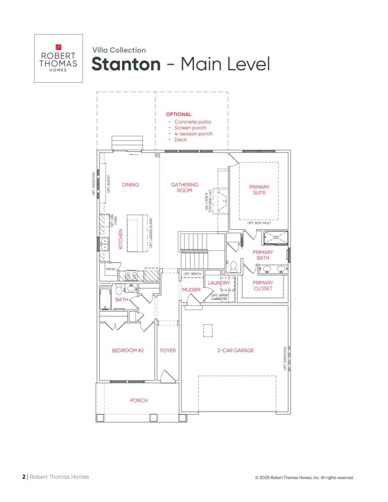 - Open dining with sliding patio door to optional four-season porch, deck or patio
