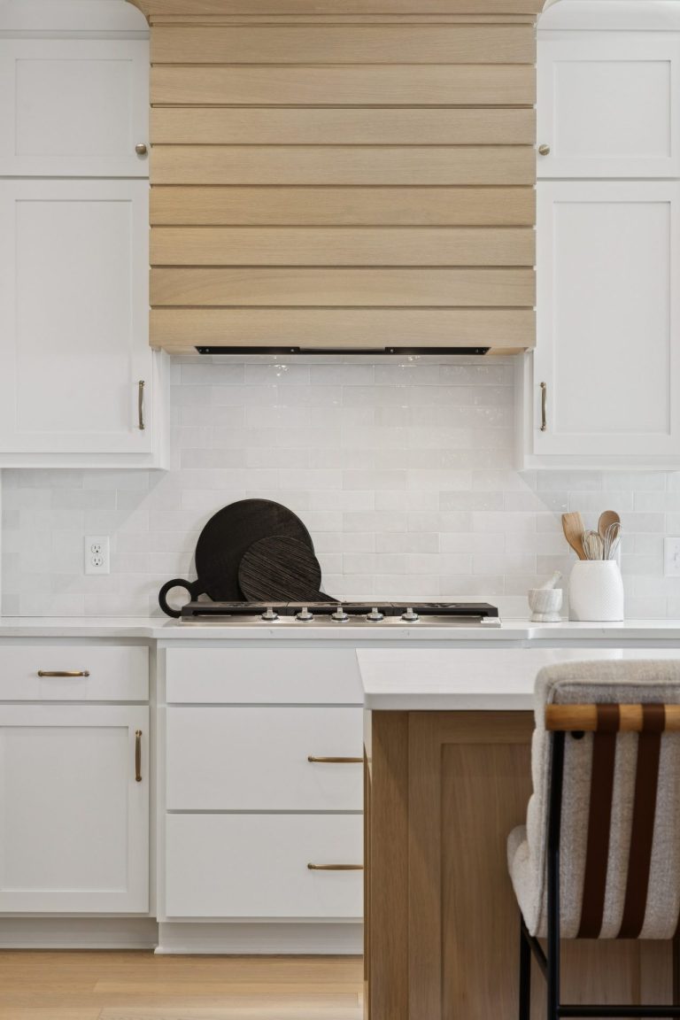 - A large kitchen island transforms from a serving buffet to a cozy “bar” where homework gets done, holiday cookies are decorated, and friends sip wine, all while staying connected to the cook.