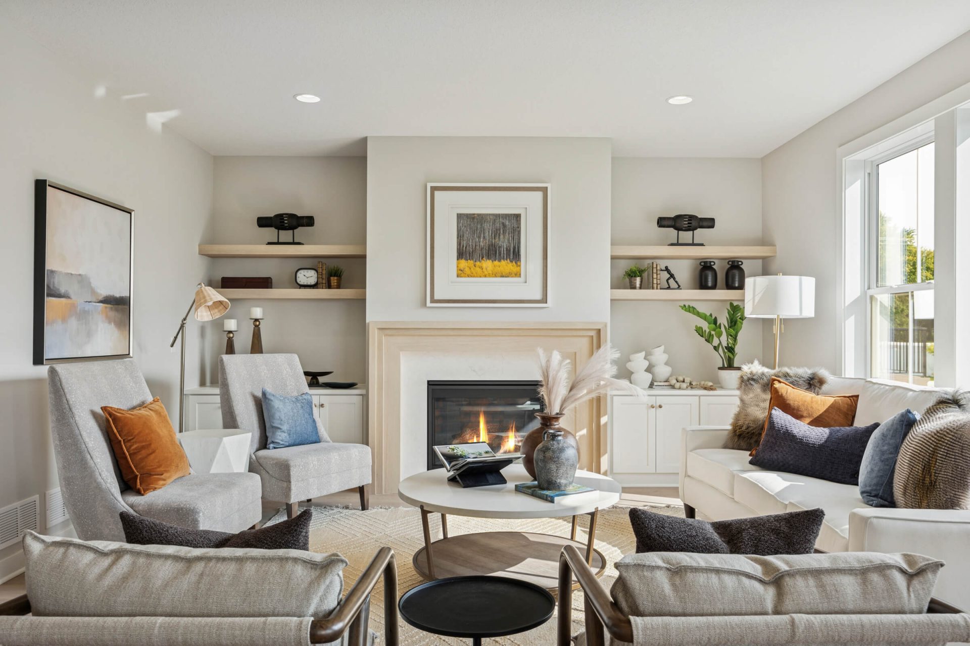 The fireplace reclaims its throne as the home’s new focal point. An open floor plan that felt vast in August can be instantly “zoned” and made cozy by floating furniture around the fireplace, creating an intentional, intimate gathering spot.