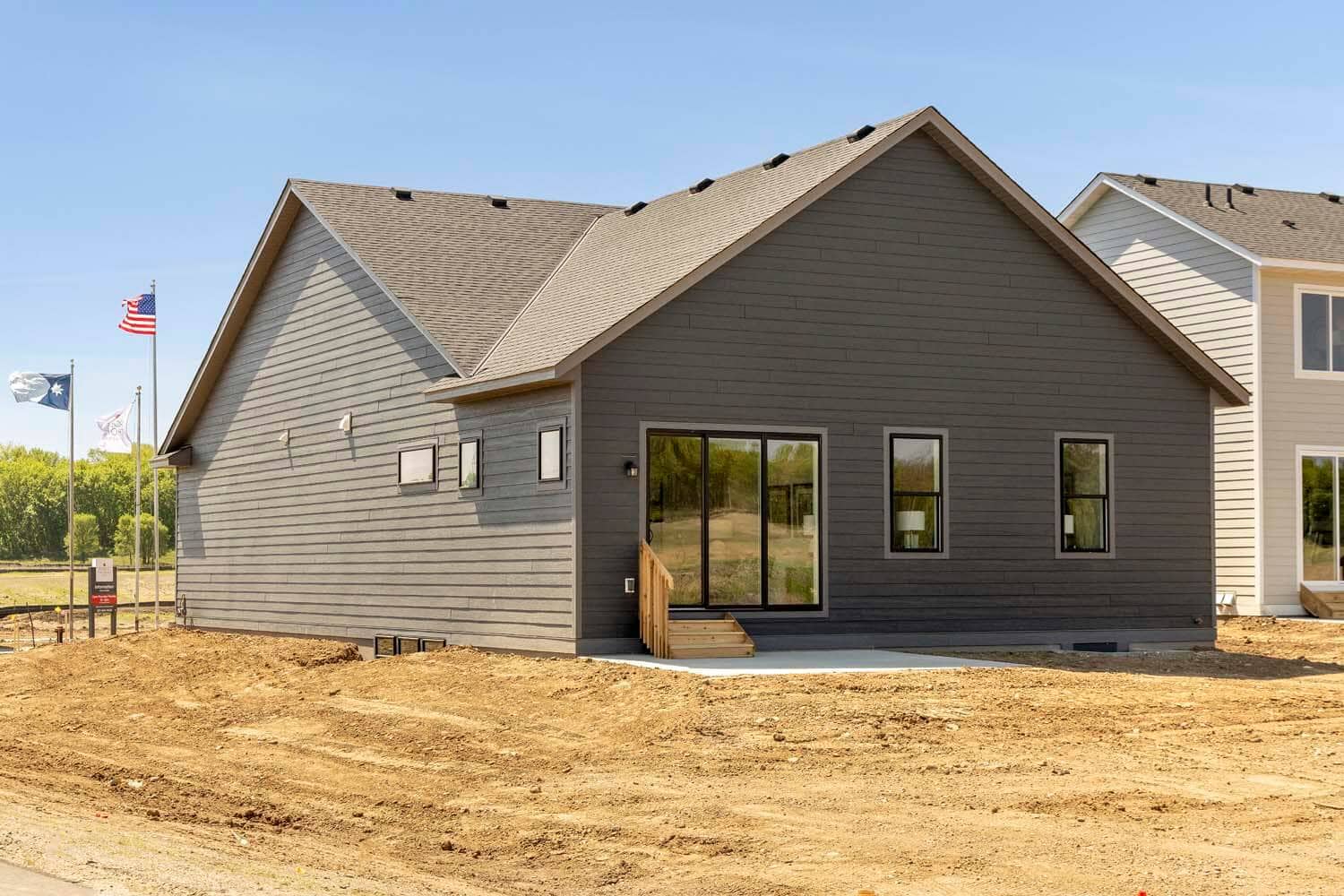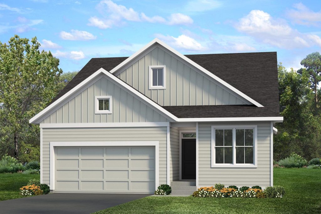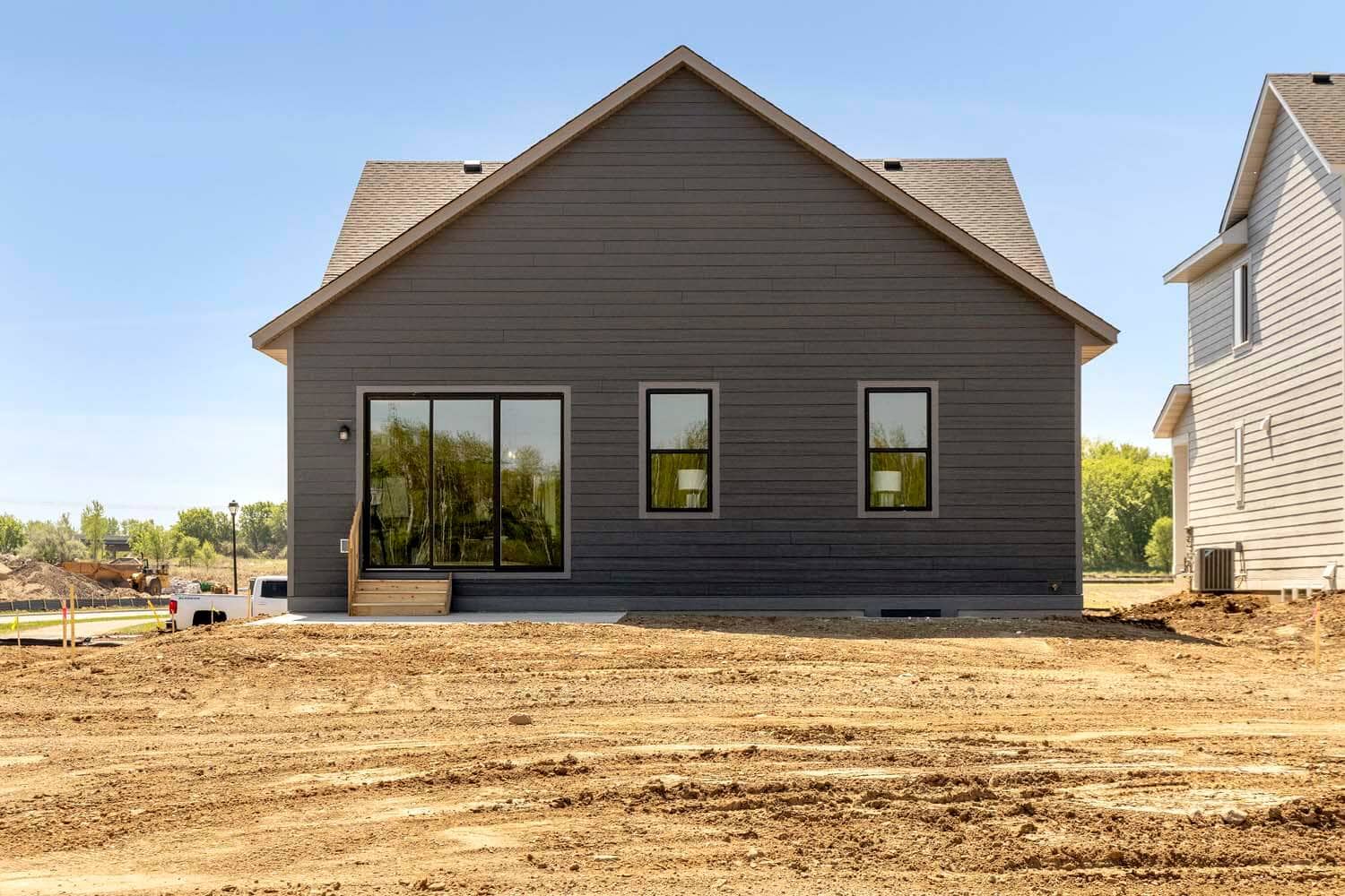 - LP SmartSide® prefinished board & lap siding with wrapped windows and trim boards on the front façade on front elevation