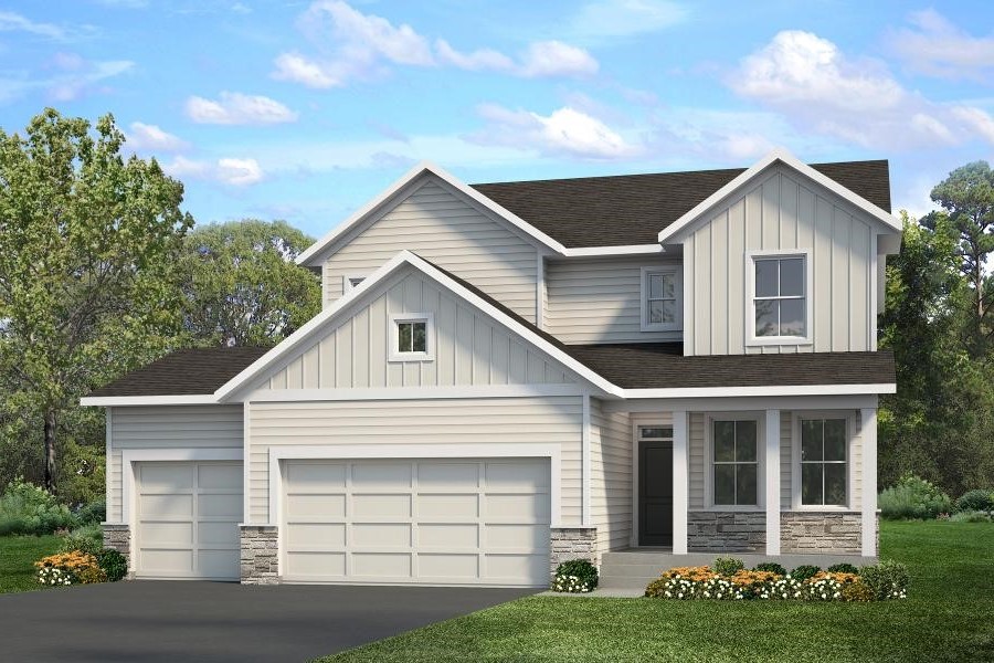 - LP SmartSide® prefinished board & lap siding with wrapped windows and trim boards on the front façade