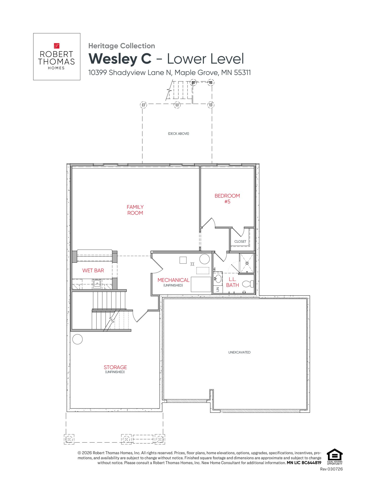 - Entertainer’s Lookout Lower Level: Finished with a 9’ foundation height, offering a family room with a custom wet bar, a fifth bedroom, an additional bathroom, and oversized storage.
