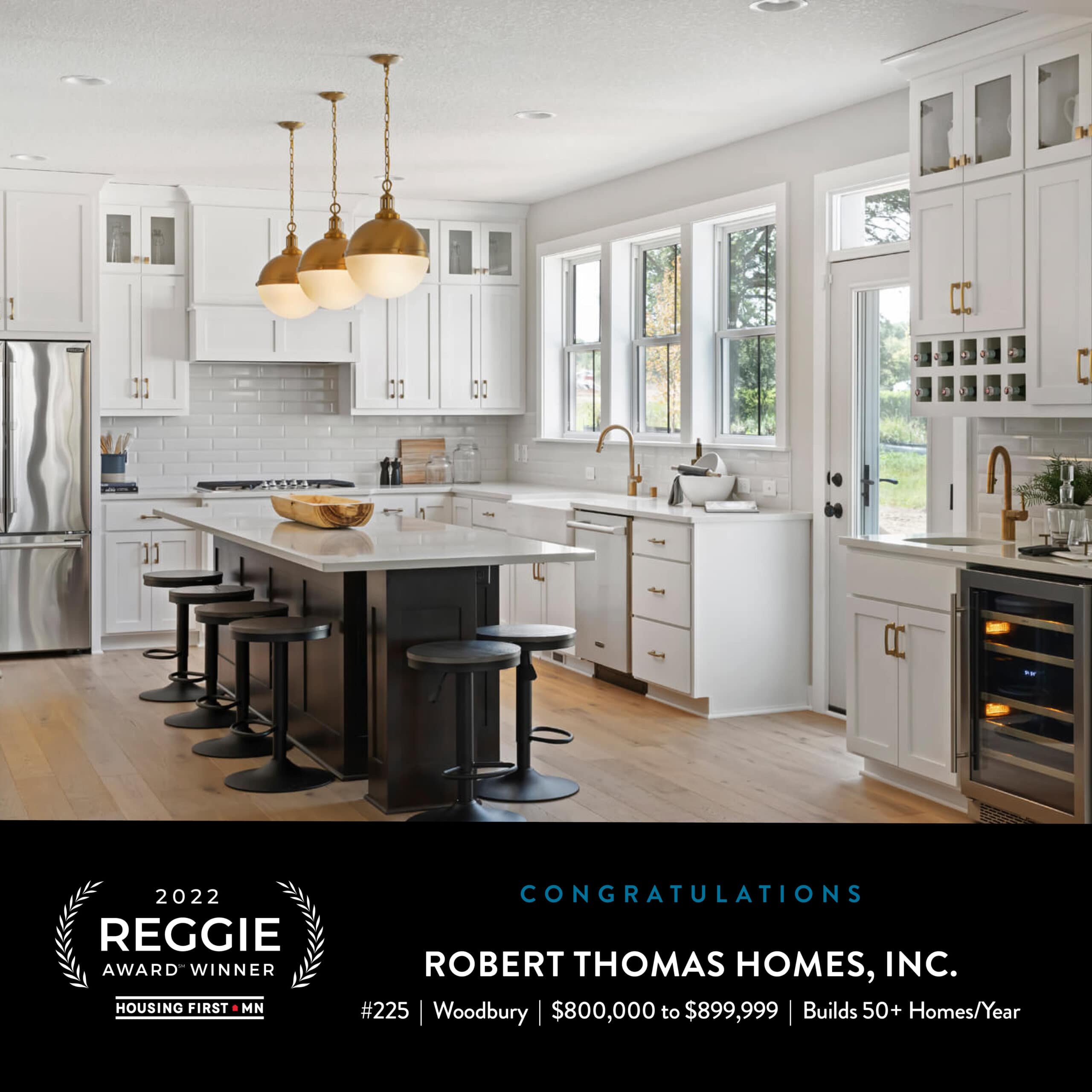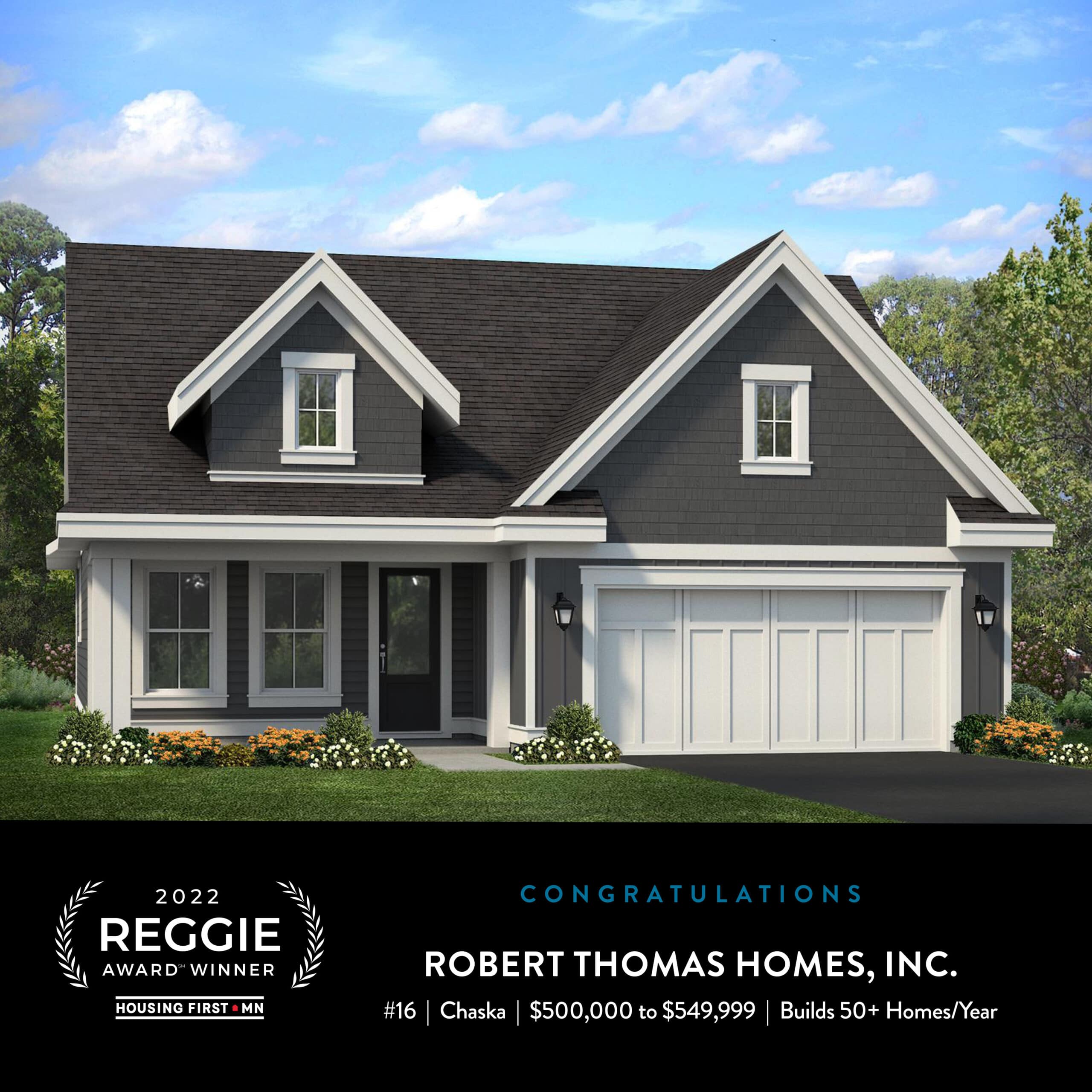 The 2022 Spring Reggie Award results are here! Robert Thomas Homes is proud to announce that we have won FIVE Reggie Awards for our models entered in the Housing First Minnesota 2022 Spring Parade of Homes! This year, we had 3 new floor plans to bring to the Spring Parade of Homes, each winning an award! With innovative designs, many unique features, and beautiful details in each, these homes scream Award-Winners! This marks our 28th Reggie Award in 8 years. We are honored to have been recognized by our building industry peers for design and construction excellence. We are also extremely thankful for everyone who took the time to visit our model homes in person this year!