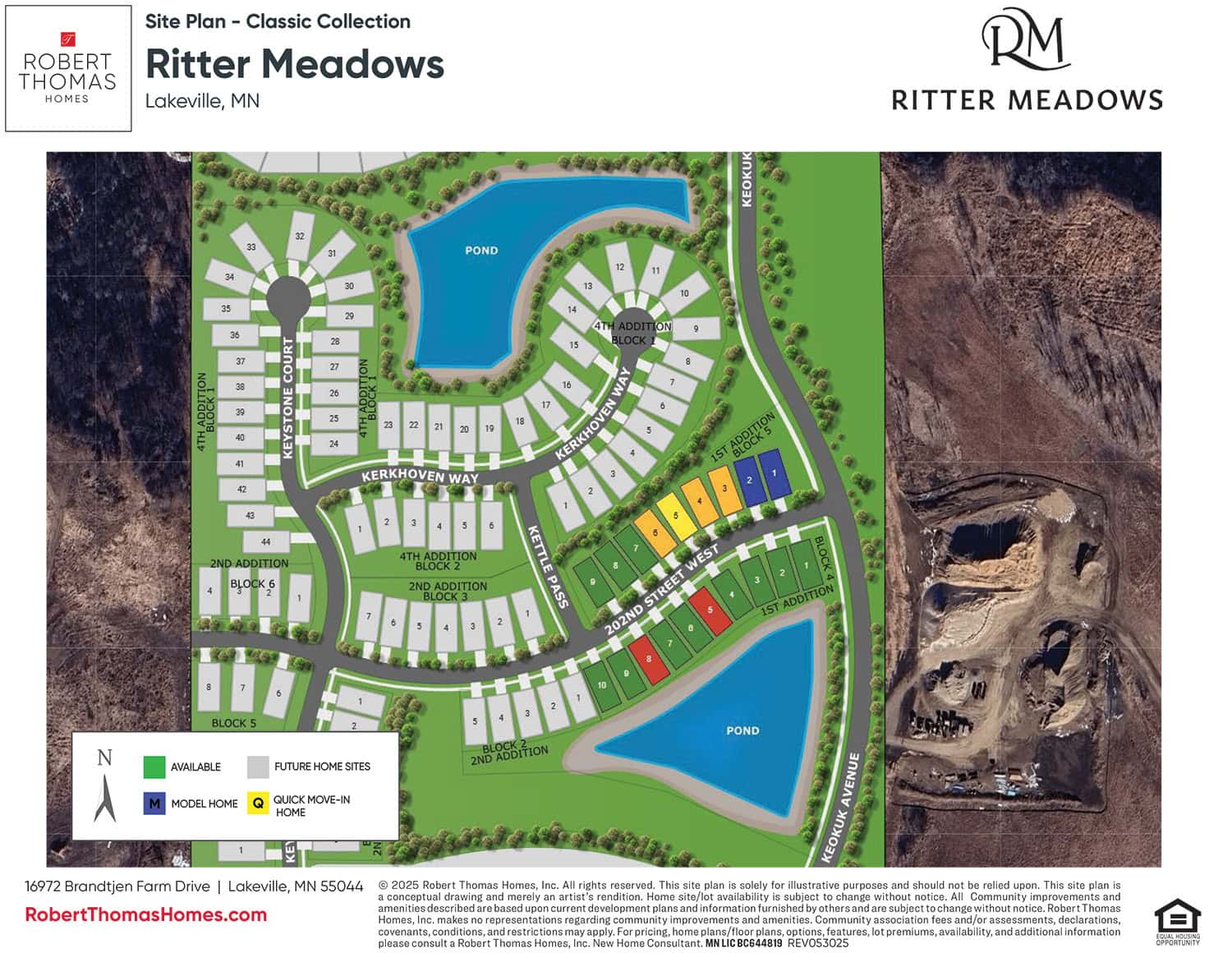 © 2025 Robert Thomas Homes, Inc. All rights reserved. Prices, floor plans, home elevations, options, upgrades, specifications, incentives, promotions, and availability are subject to change without notice. Finished square footage and dimensions are approximate and subject to change without notice. “Starting from” refers to the base price or starting price of a home plan/floorplan not including optional home elevations, options, upgrades, or lot premiums. “Starts at” refers to the lowest base price or starting price available within a collection of home plans/floorplans in a community not including optional home elevations, options, upgrades, or lot premiums. Models, photos, virtual tours, video tours, and/or illustrations may not depict actual home plan/floorplan configuration and/or details and may show certain options and upgrades not included in the base price or starting price of the home plan/floorplan. Model homes featured may show model staging, furniture, and accessories that are not included in the purchase of a home. Community improvements and amenities described are based upon current development plans and information furnished by others and are subject to change without notice. Robert Thomas Homes, Inc. makes no representations regarding community improvements and amenities. Community association fees and/or assessments, declarations, covenants, conditions, and restrictions may apply. Promotions and incentives may require the use of a certain lender that is an affiliate of Robert Thomas Homes, Inc. Floor plans and home elevations are used by permission by Robert Thomas Homes, Inc. and are protected by U.S. copyright laws. Please consult a Robert Thomas Homes, Inc. New Home Consultant for additional information. MN LIC BC644819