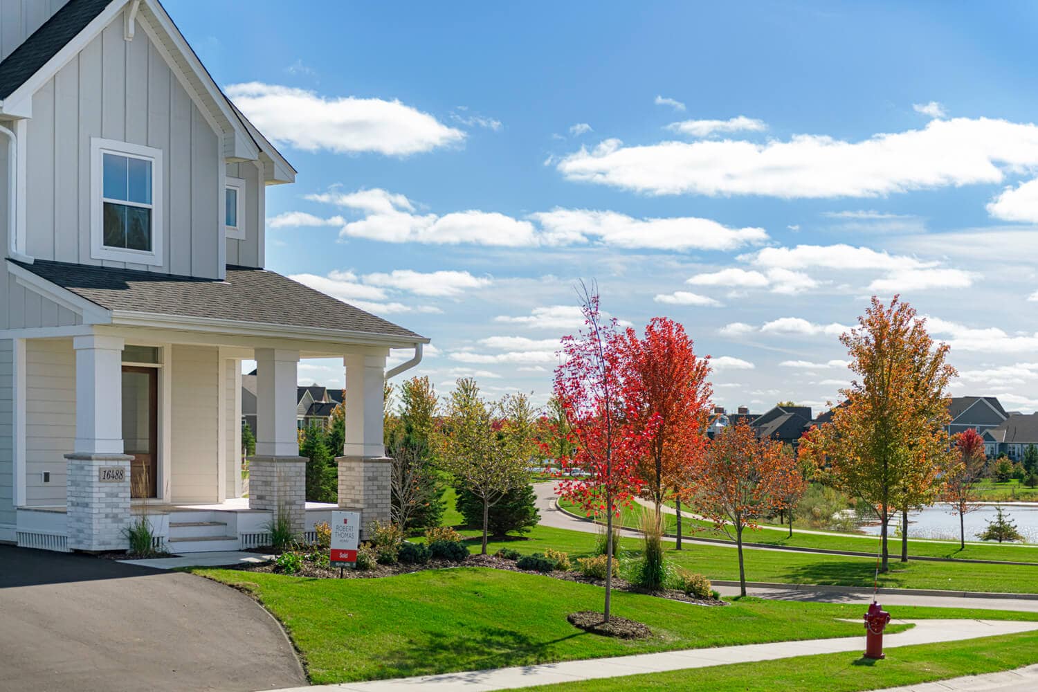 Homesites are situated to enjoy the abundance of open green space, lakes, wetlands, and wooded areas, all linked by miles of trails. Tree-lined sidewalks encourage front-porch living, and residents enjoy numerous outdoor amenities, including picnic areas, fire pits, sand volleyball court, basketball court, horseshoe pit, and playgrounds.