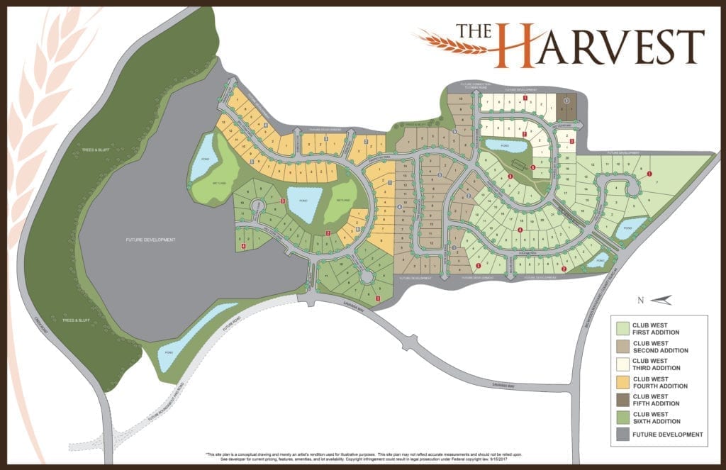 The Harvest is the perfect blend of the peaceful ‘country life’ yet close enough to enjoy the perks of city living. The community features amenity-rich homesites, abundant green vegetation, natural wetlands, trails, and neighborhood parks.