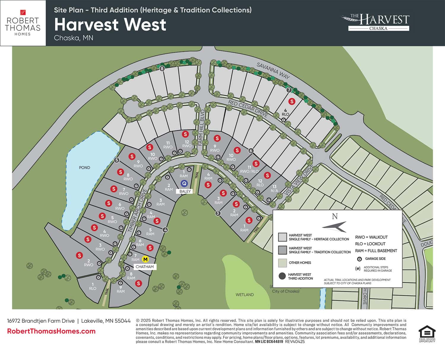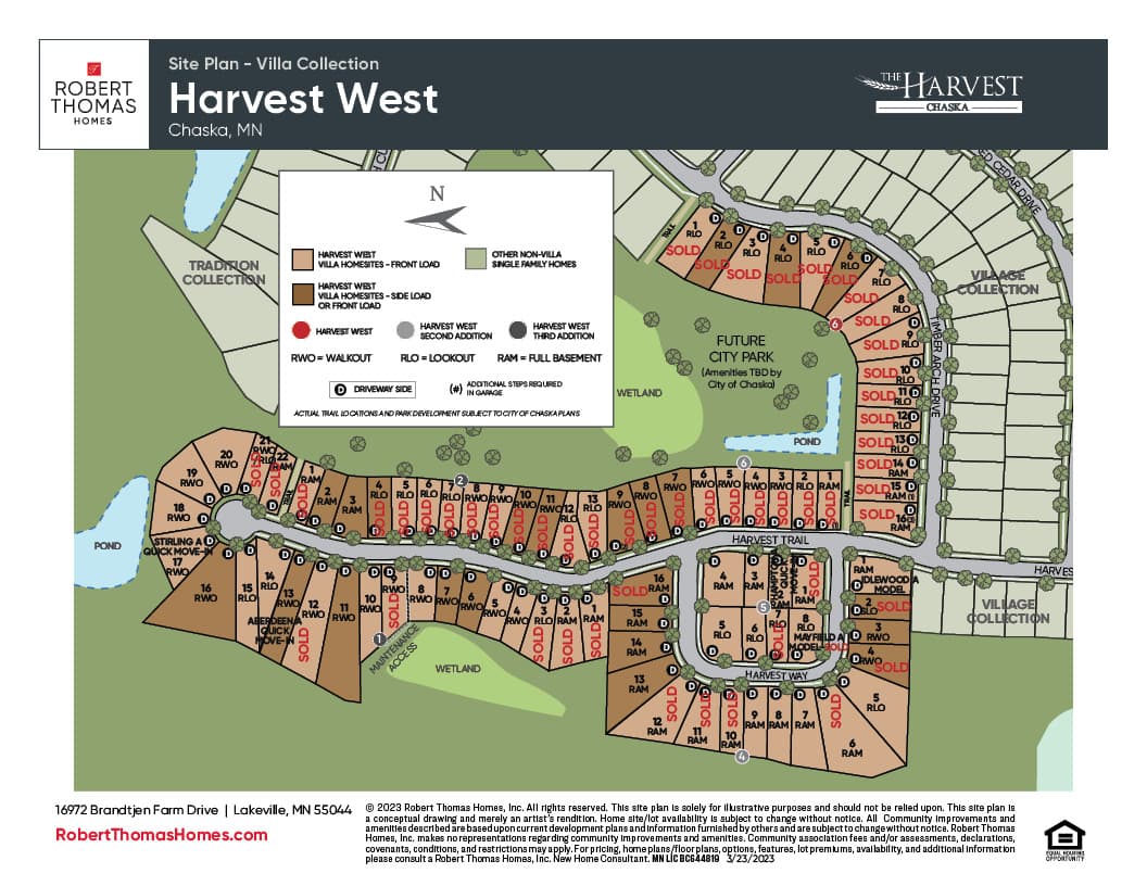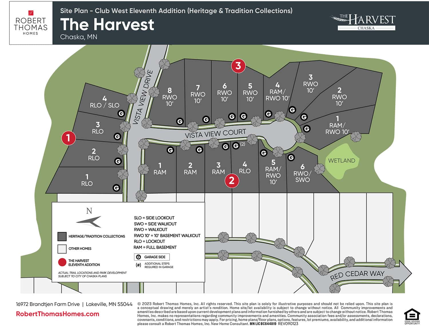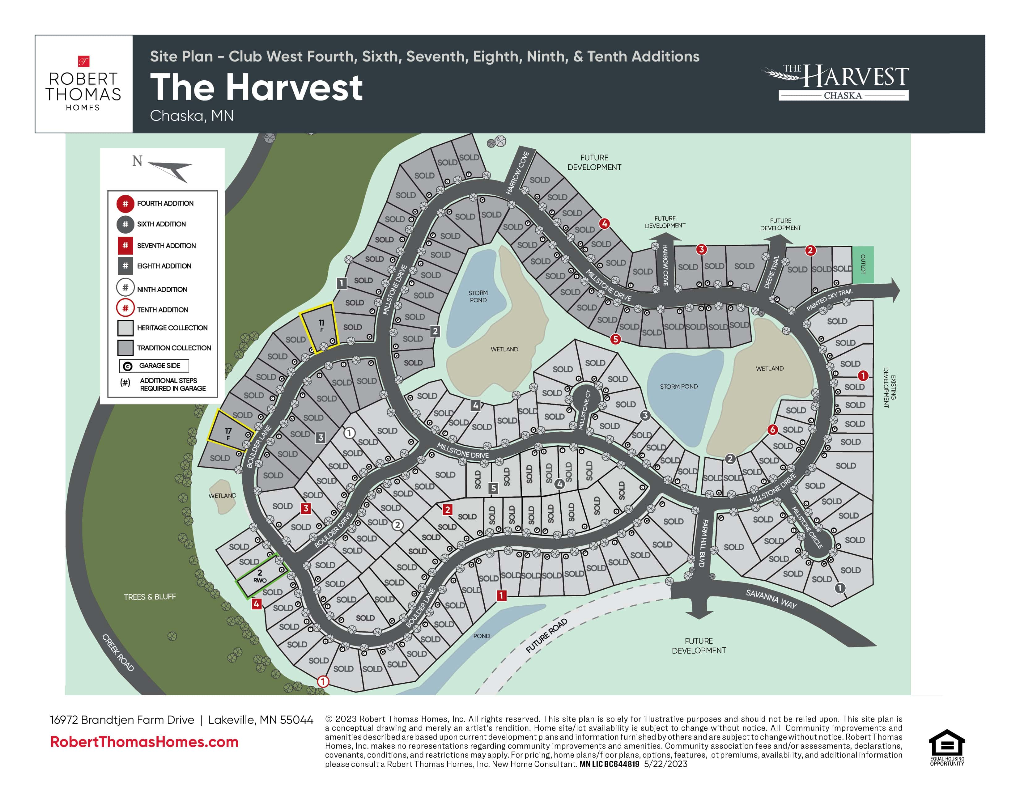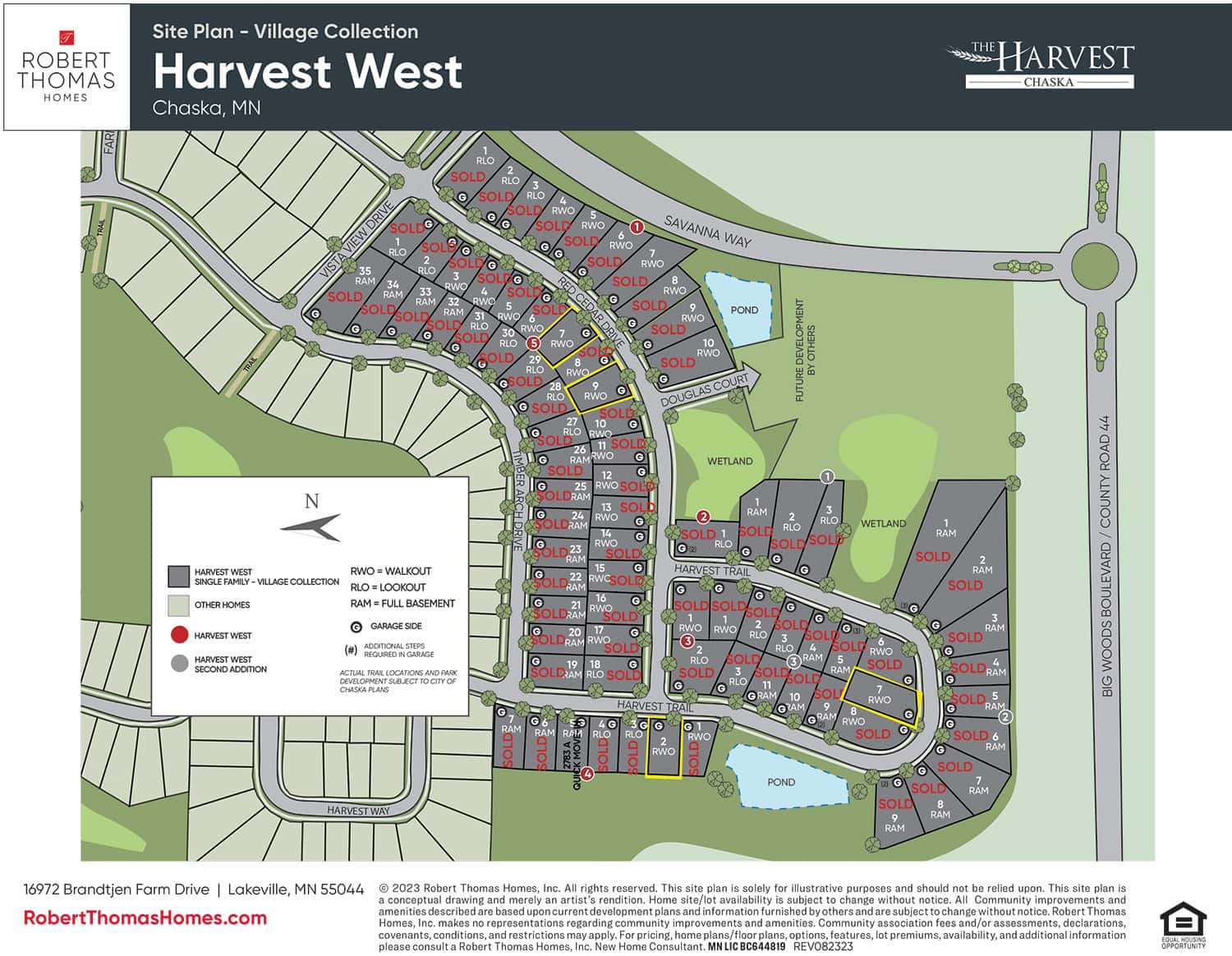 The Harvest features parks, tree-lined lots, trails and private wooded home sites. The neighborhood is just minutes away from historic downtown Chaska, Eden Prairie shopping center, movie theaters, and dining establishments.