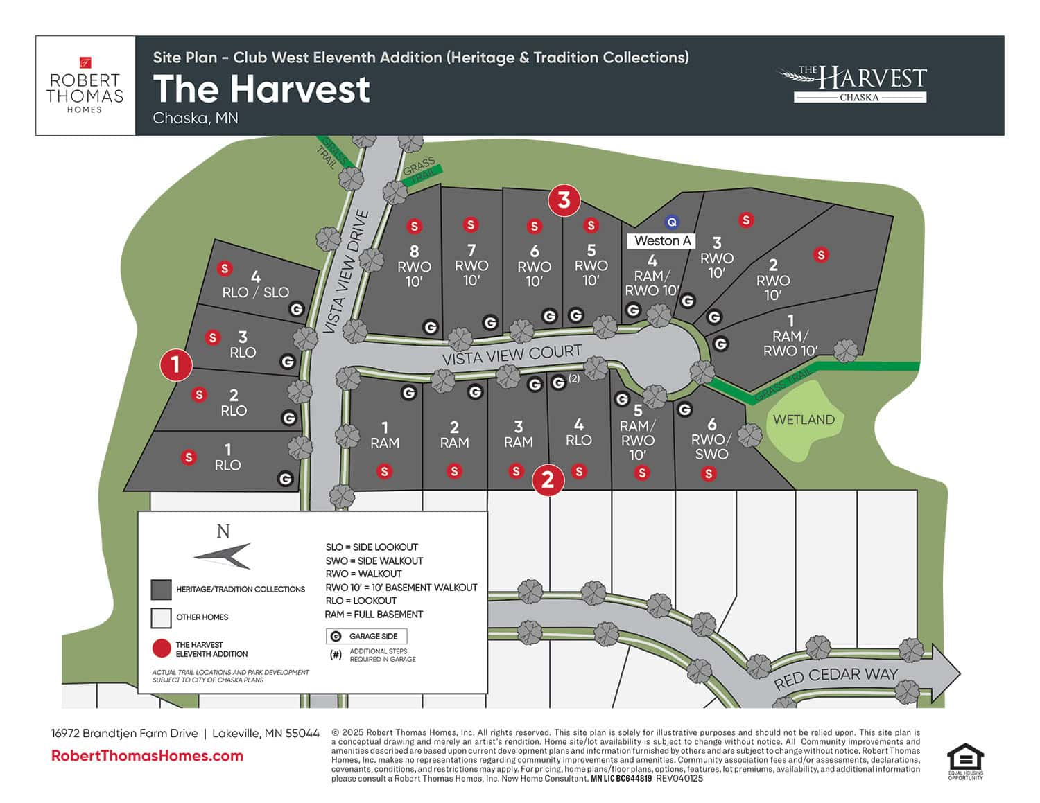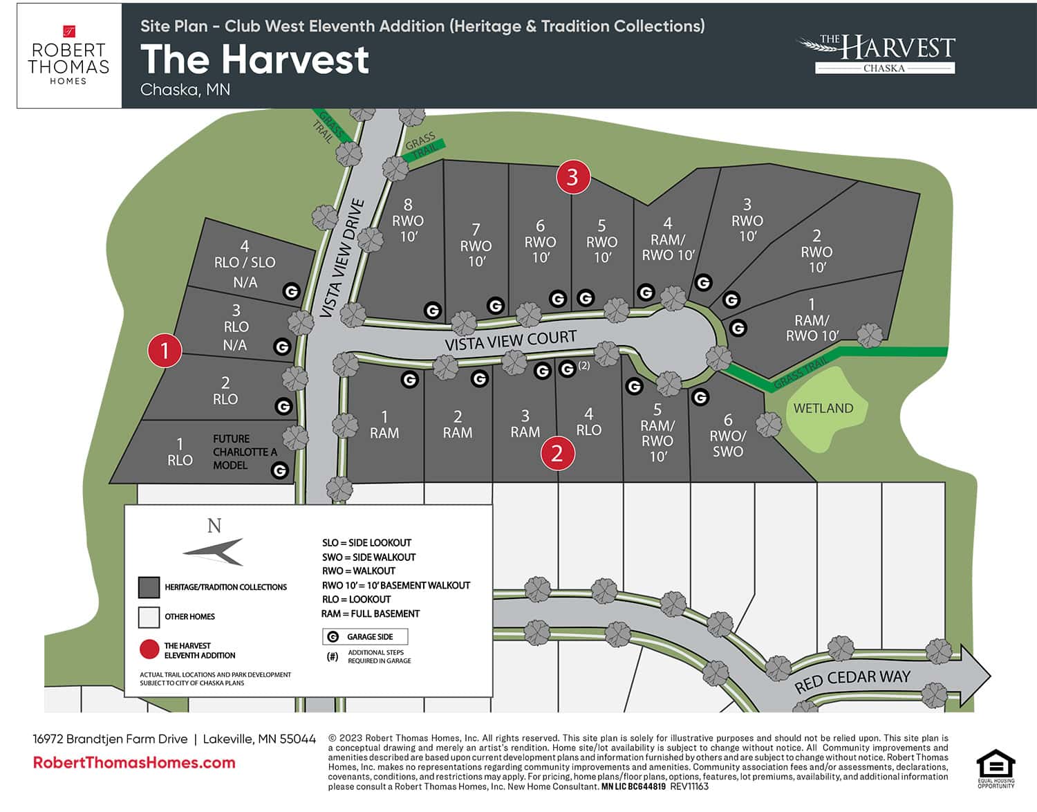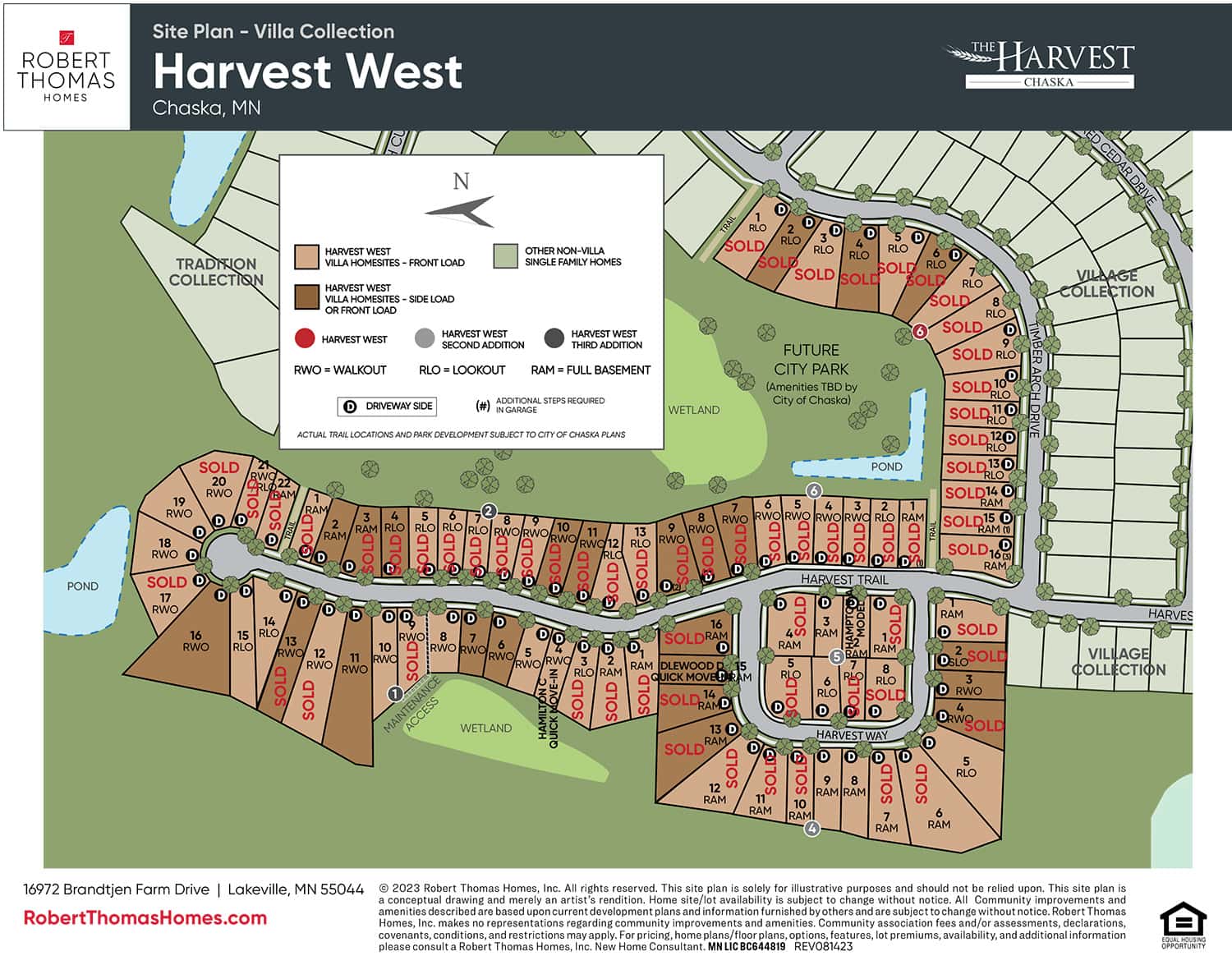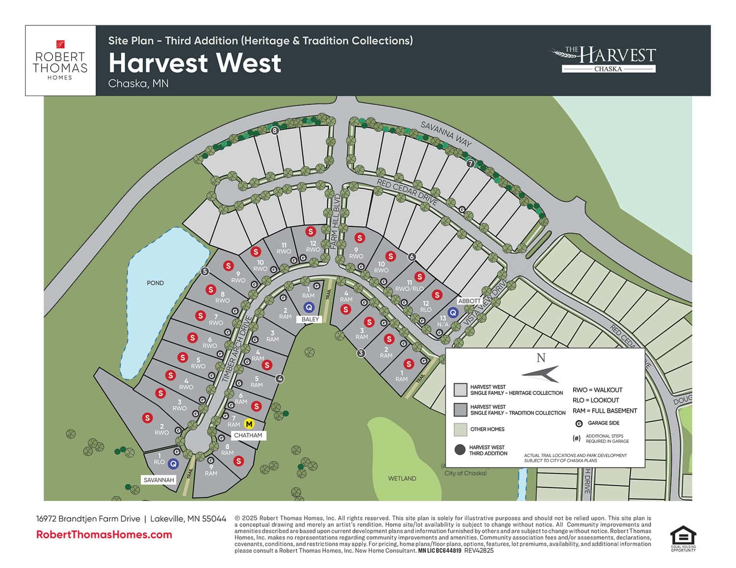 The Harvest features parks, tree-lined lots, trails and private wooded home sites. The neighborhood is just minutes away from historic downtown Chaska, Eden Prairie shopping center, movie theaters, and dining establishments.