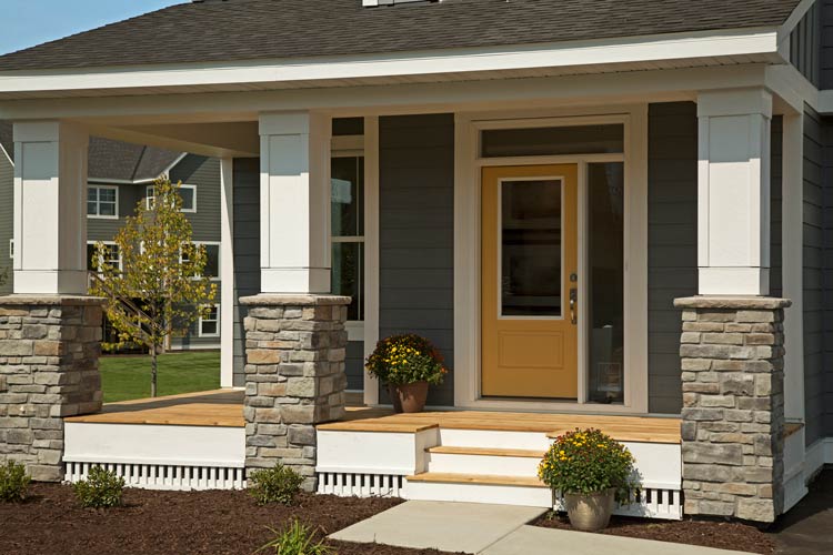 CRAFTSMAN OR BUNGALOW – A blue or turquoise colored door would add an unexpected touch to contrast the low rooflines and porches commonly found on these types of homes.