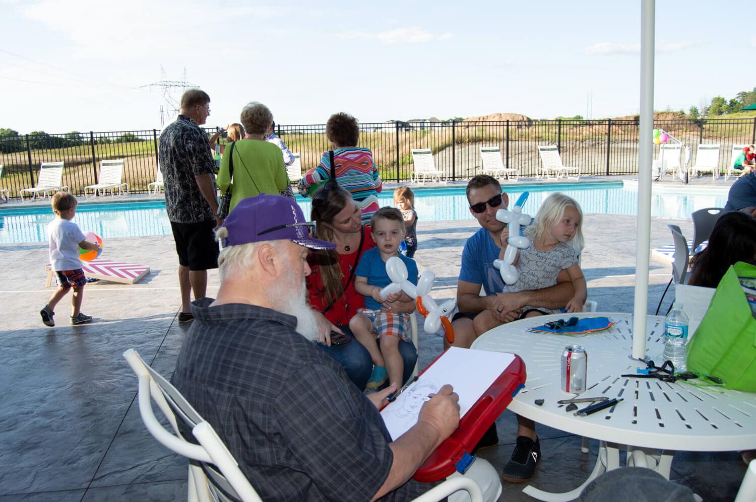 Highcroft neighbors enjoyed tasty ice cream treats courtesy of Mik Mart ice cream truck (a local favorite), snacked on delicious appetizers from Crave, hung out by the pool, got balloon animals and personalized caricature drawings, climbed aboard the Woodbury Firetruck, and explored their new pool and clubhouse complete with multi-purpose meeting room, and exercise room.