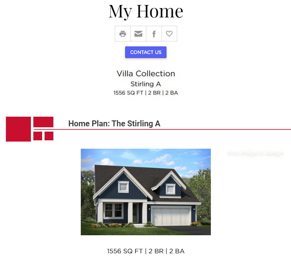 - Once you’re happy with your interior selections, click the “Next” button to create your brochure. Your brochure will include your floor plan, details of your exterior color package, and your interior floorplan options. You can email, share, or download a brochure that you can save or bring in to your New Home Consultant at your next appointment.