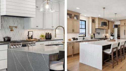 Elevate your kitchen with a sleek waterfall countertop. Designed to flow seamlessly from the top of the counter down to the floor, they add a modern, sophisticated touch to any space. Made from high-quality materials, these countertops combine durability with style, making your kitchen both functional and visually stunning. See more of our customized kitchens in our Gallery.