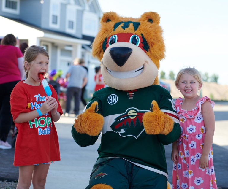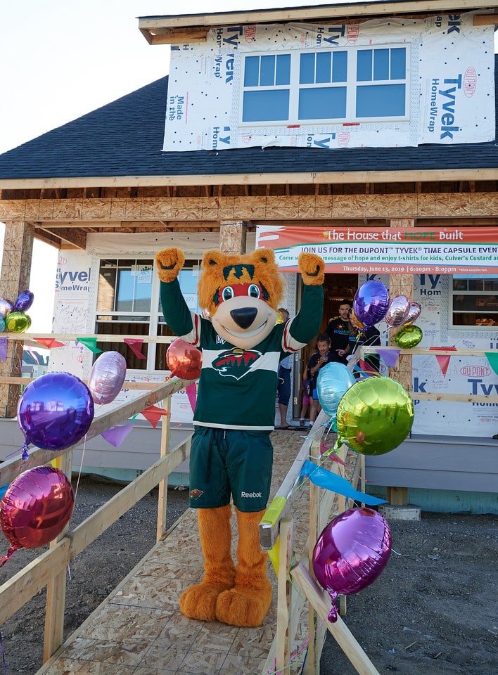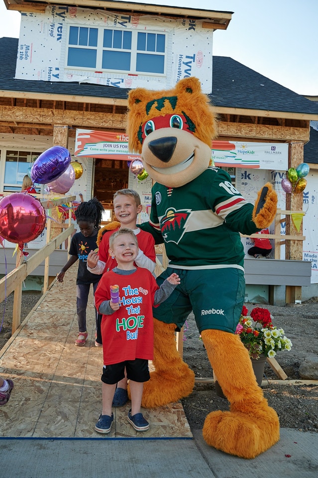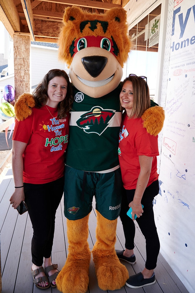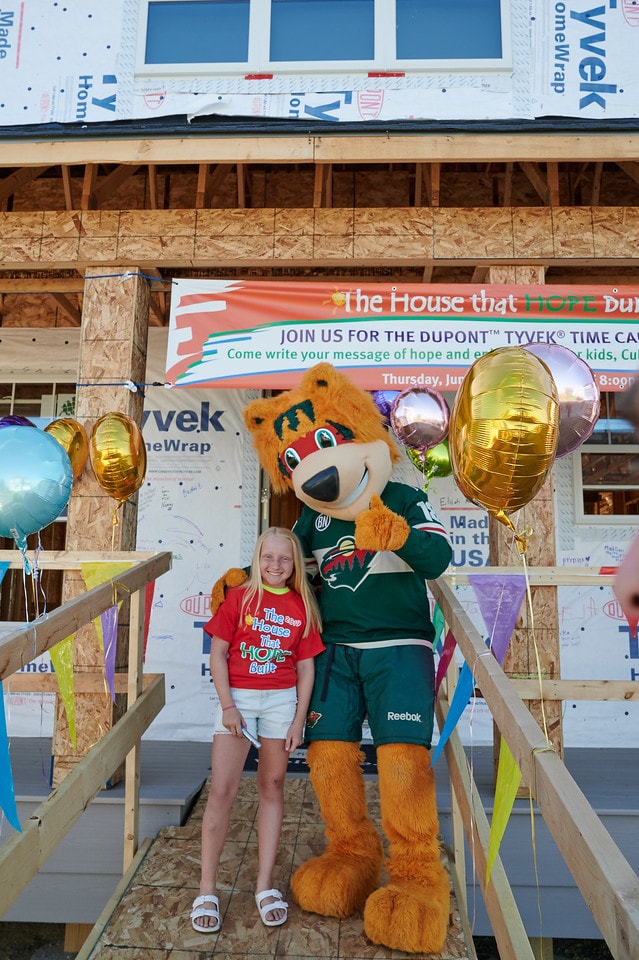 Everyone who attended helped draw, sign and write messages of HOPE on the 2019 House That Hope Built | 16277 Duskwood Trail, Lakeville, MN. We enjoyed Culver’s custard, Pink Cow Ice Cream, yard games and even got to meet the MN Wild mascot, Nordy! It was a great community event that brought everyone together for a great cause.