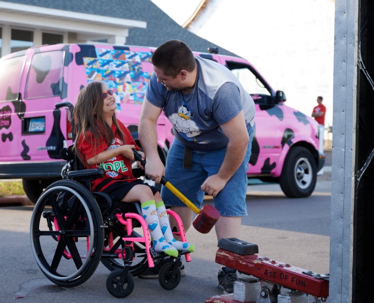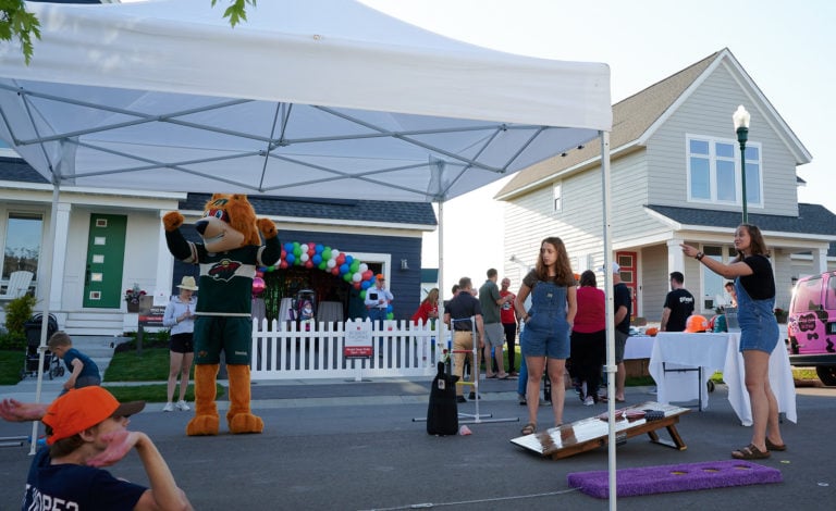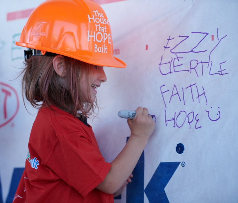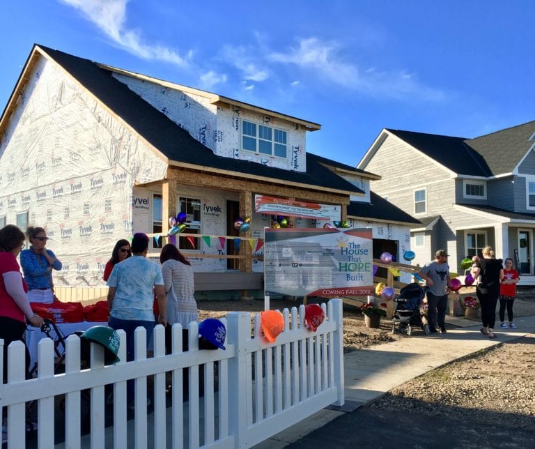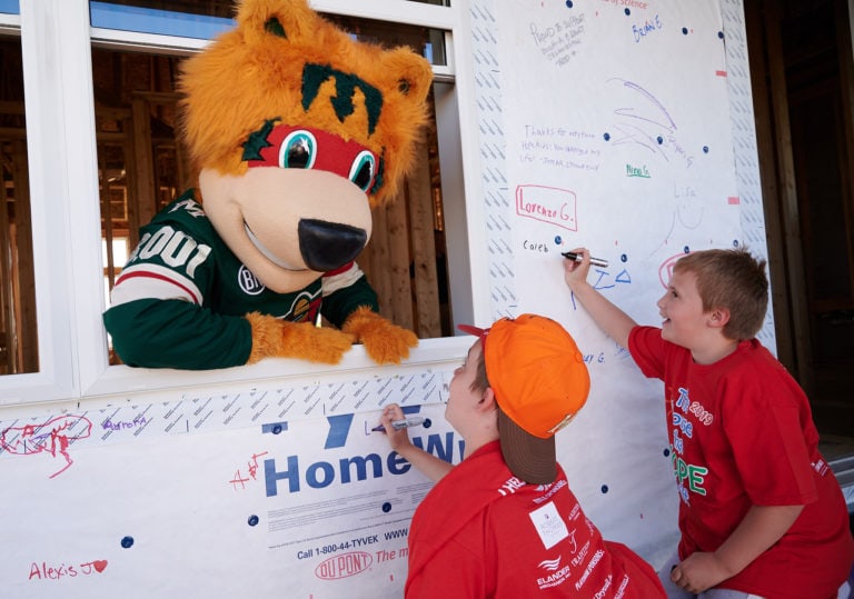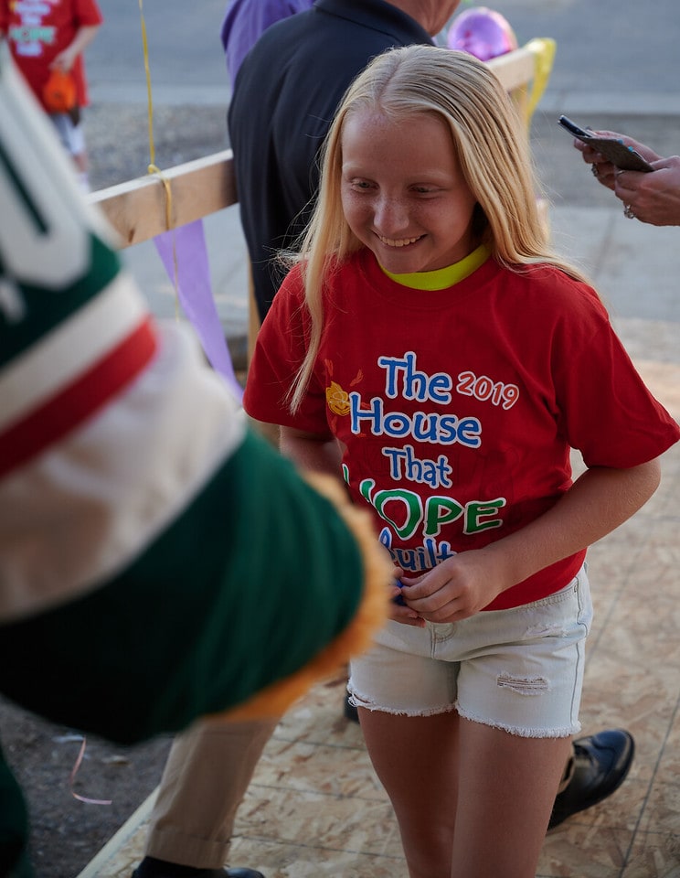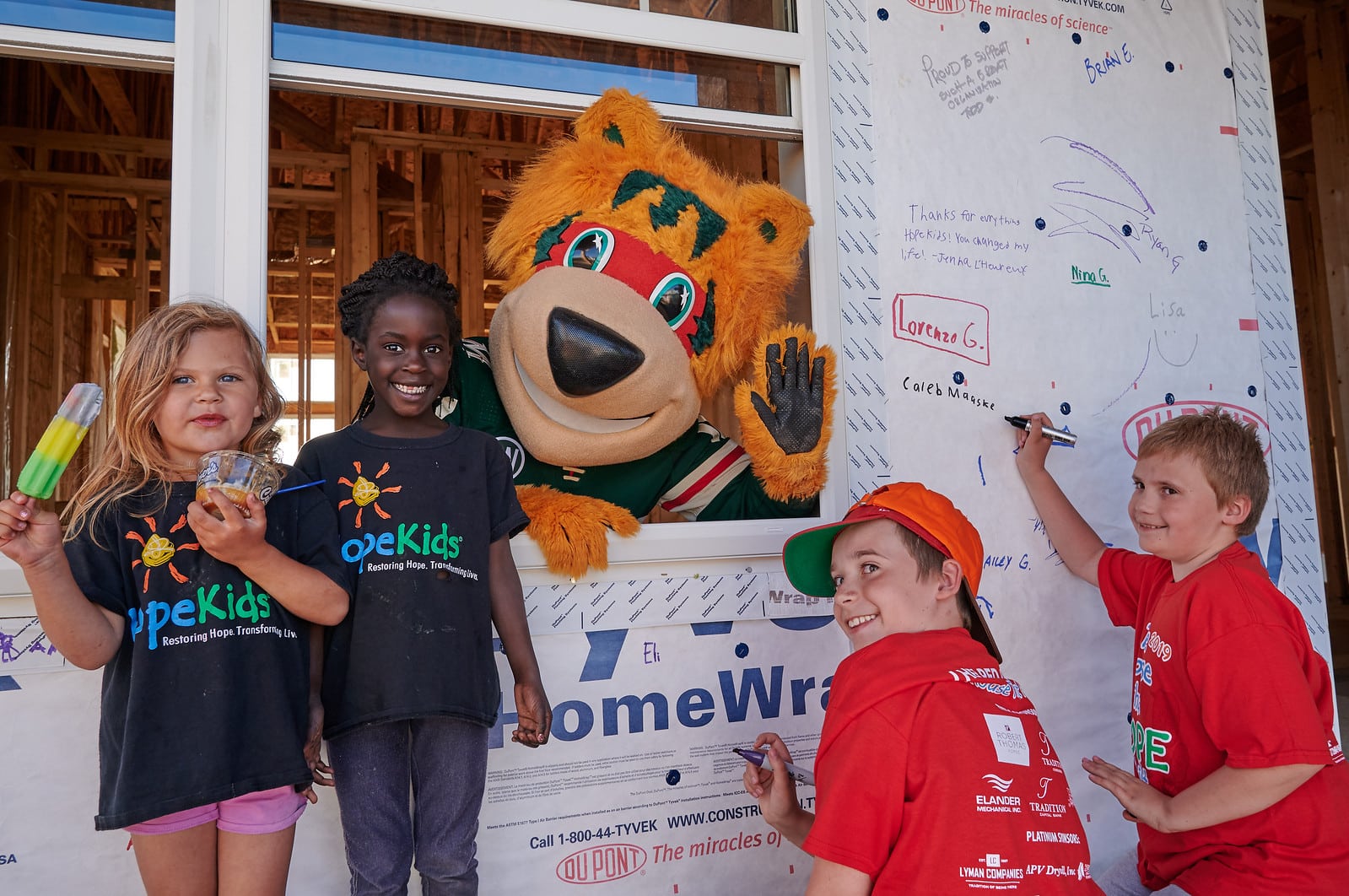 Everyone who attended helped draw, sign and write messages of HOPE on the 2019 House That Hope Built | 16277 Duskwood Trail, Lakeville, MN. We enjoyed Culver’s custard, Pink Cow Ice Cream, yard games and even got to meet the MN Wild mascot, Nordy! It was a great community event that brought everyone together for a great cause.