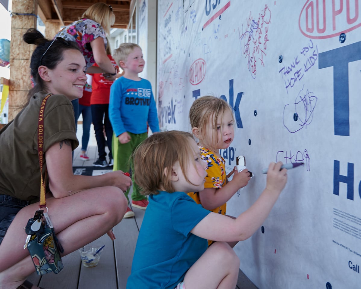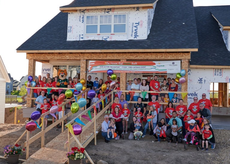 June 13th, 2019 was the  DuPont™ Tyvek® Time Capsule Event hosted by Robert Thomas Homes, Tradition CompaniesDuPont™ Tyvek®, and Hallmark Building Supplies. We were joined by HopeKids Minnesota volunteers and families, and Spirit of Brandtjen Farm future and current homeowners to celebrate.