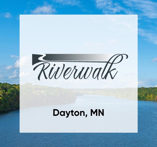 Riverwalk is a peaceful neighborhood next to the Mississippi River on the northern edge of Hennepin County. Homesites offer views of mature trees and wetlands, and residents enjoy miles of walking trails and a neighborhood clubhouse with an outdoor pool.