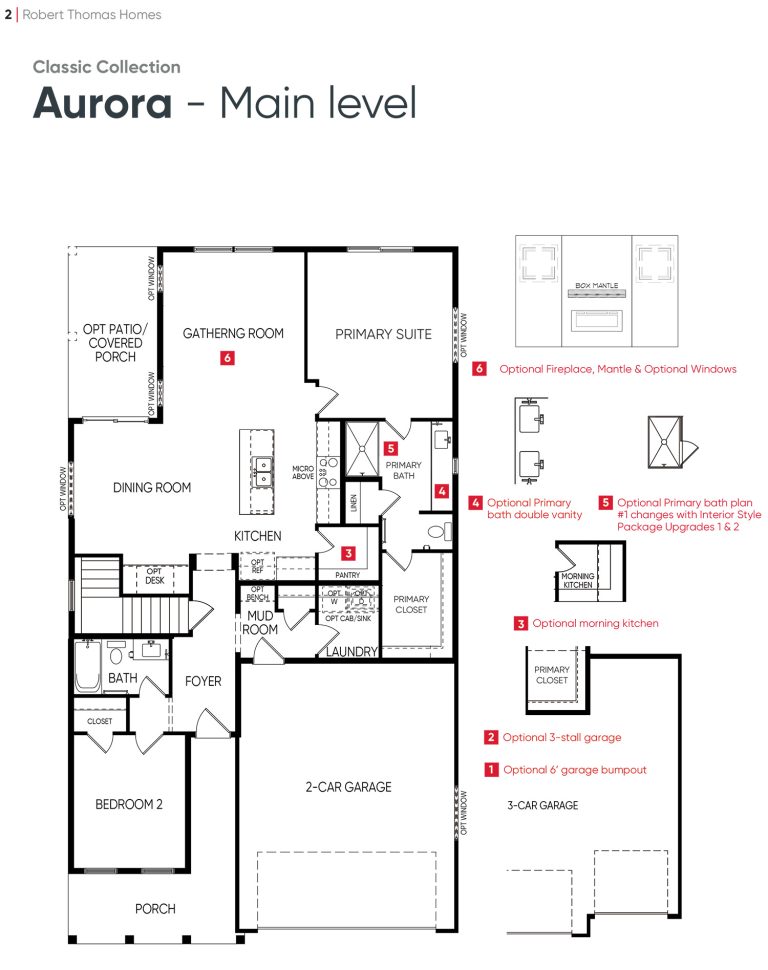 - Optional gathering room fireplace