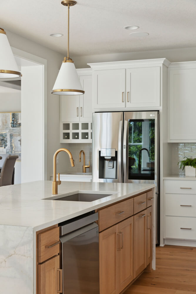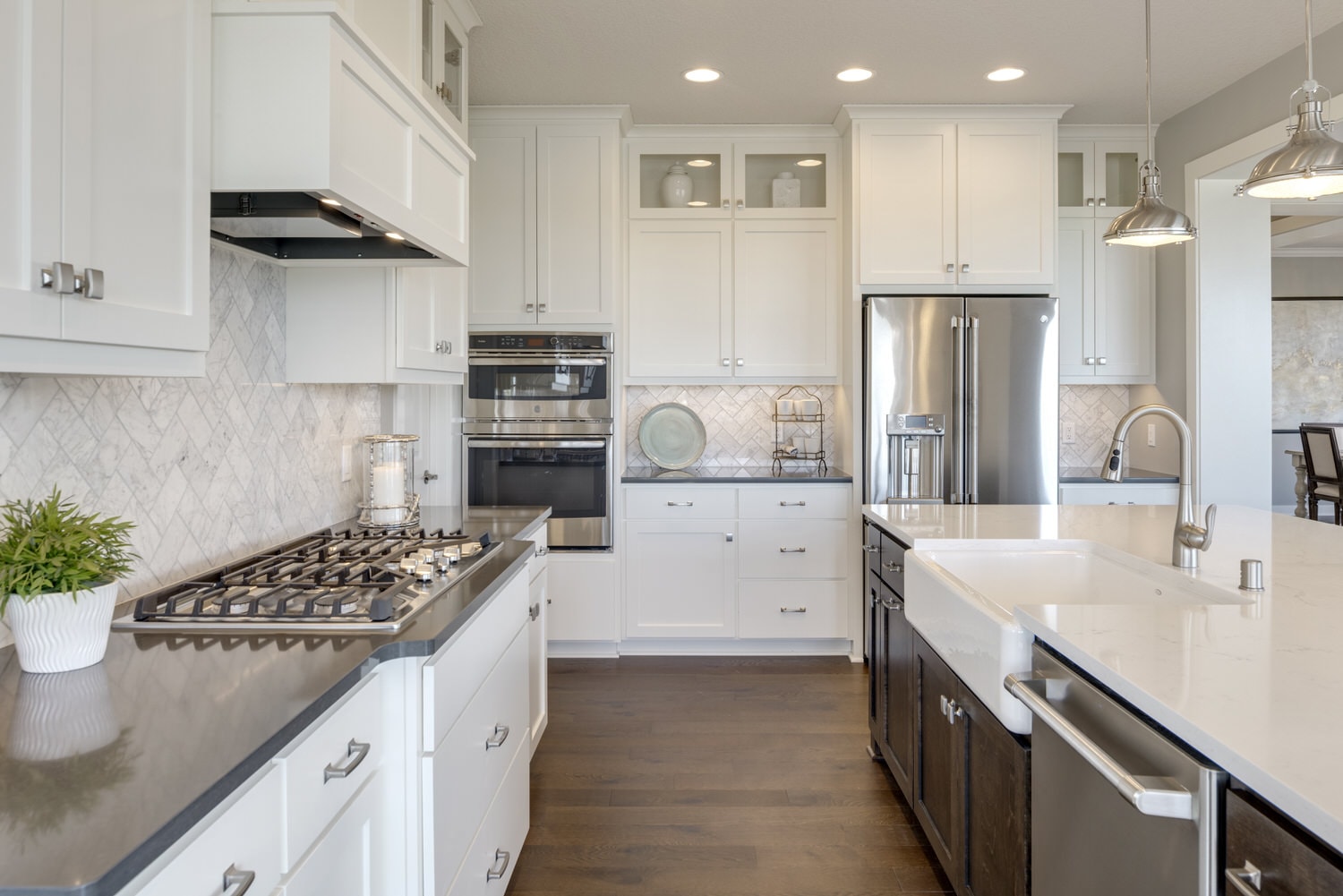 - Gourmet kitchen with island sink, corner walk-in pantry, and optional built-in oven column