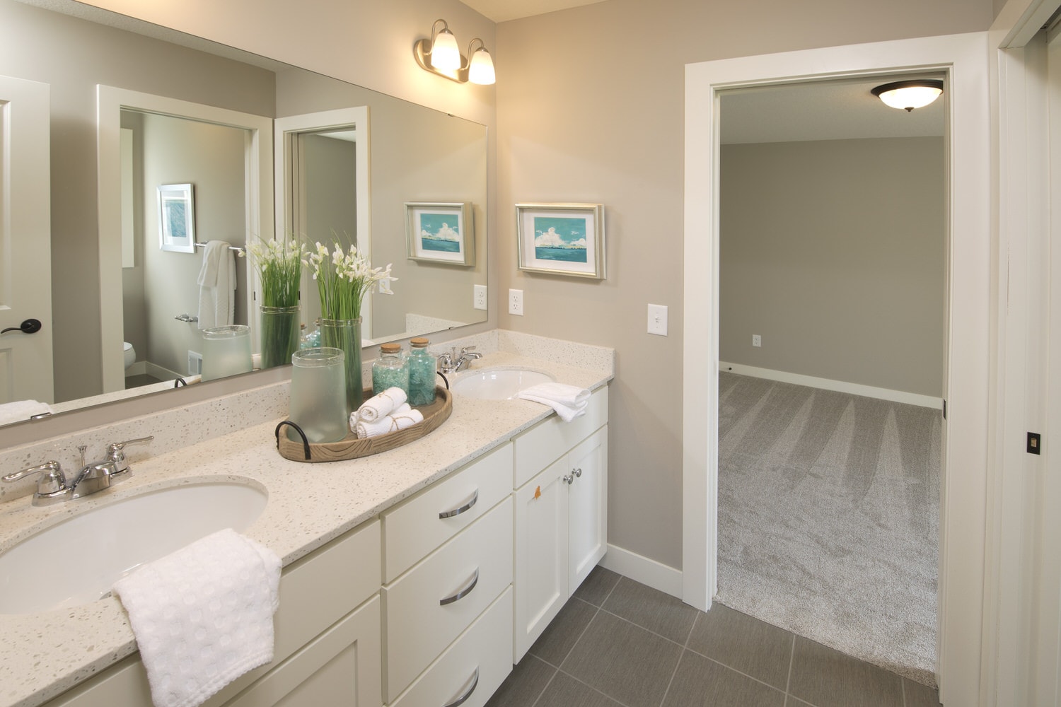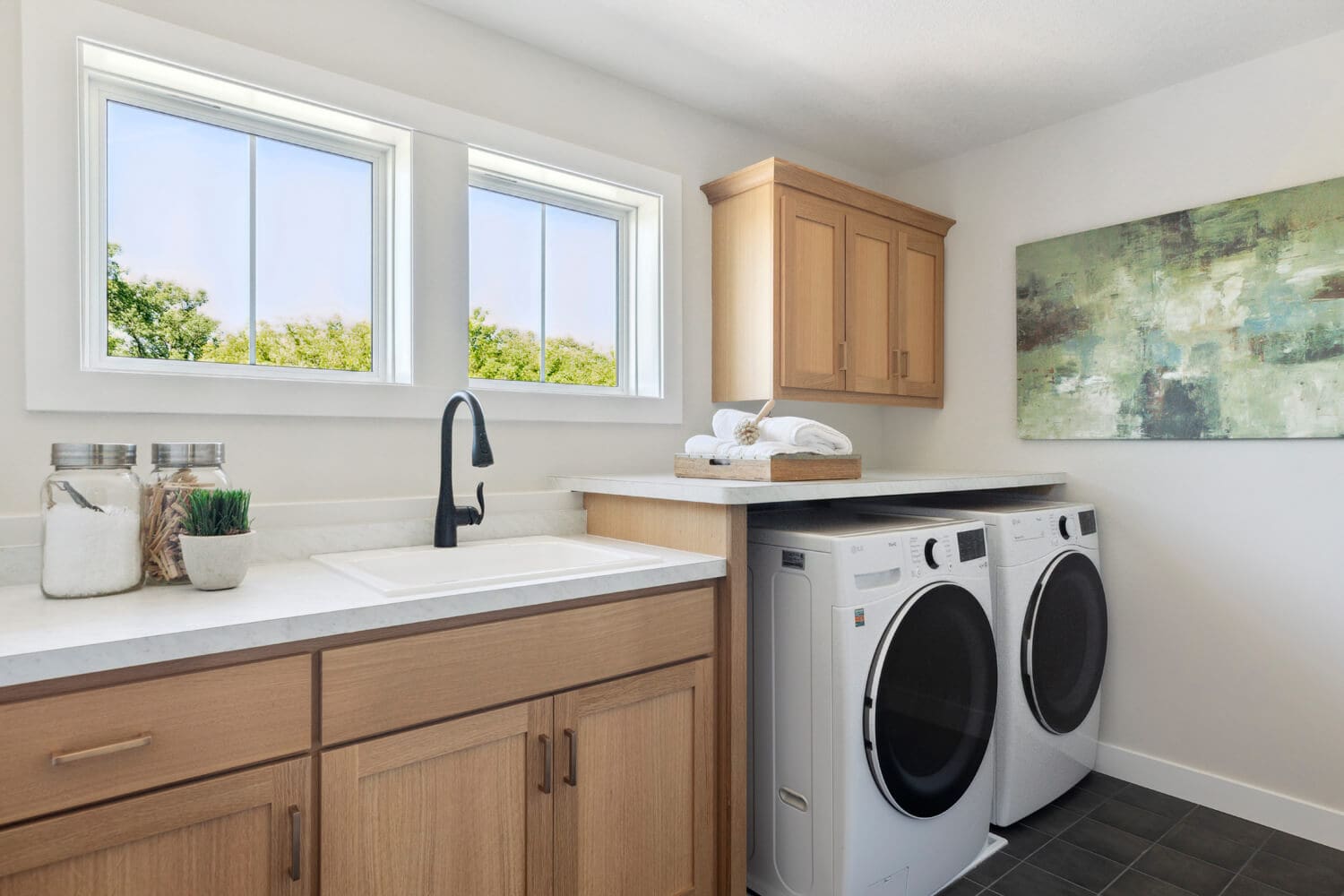 - Upper level features 4 bedrooms, 3 baths, bonus room and spacious laundry with optional cabinetry, folding table and sink