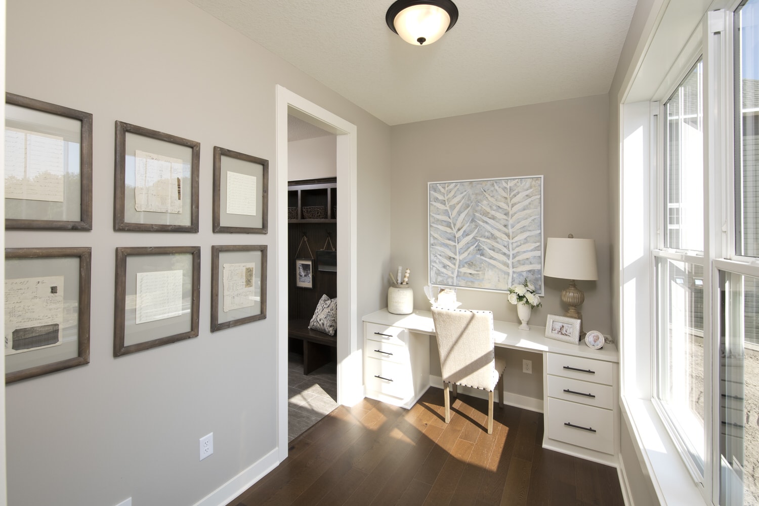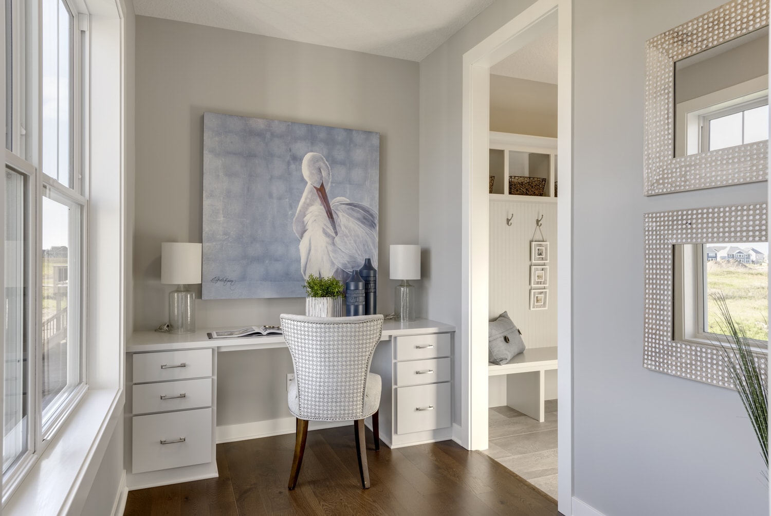 - Convenient resource room near mudroom and kitchen includes option for built-in desk