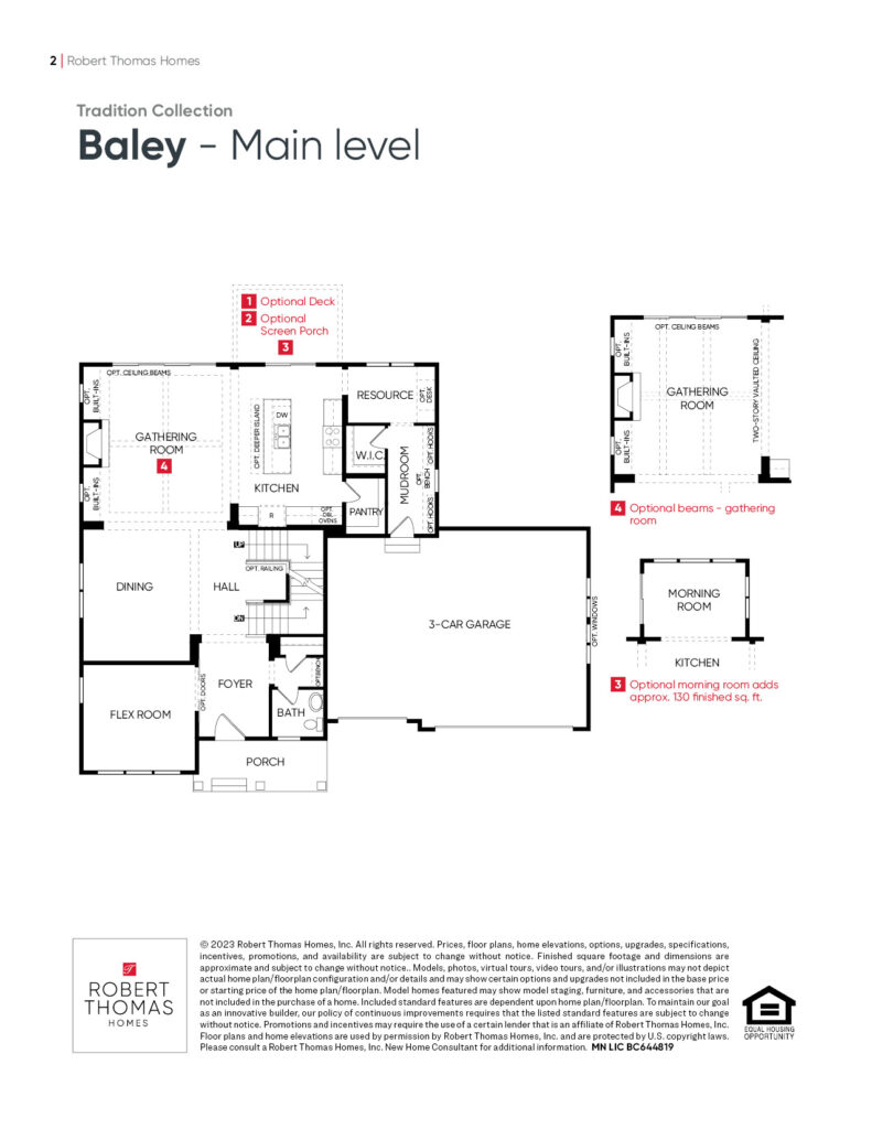 - Optional two story vaulted ceiling with available beams in gathering room in lieu of bonus room