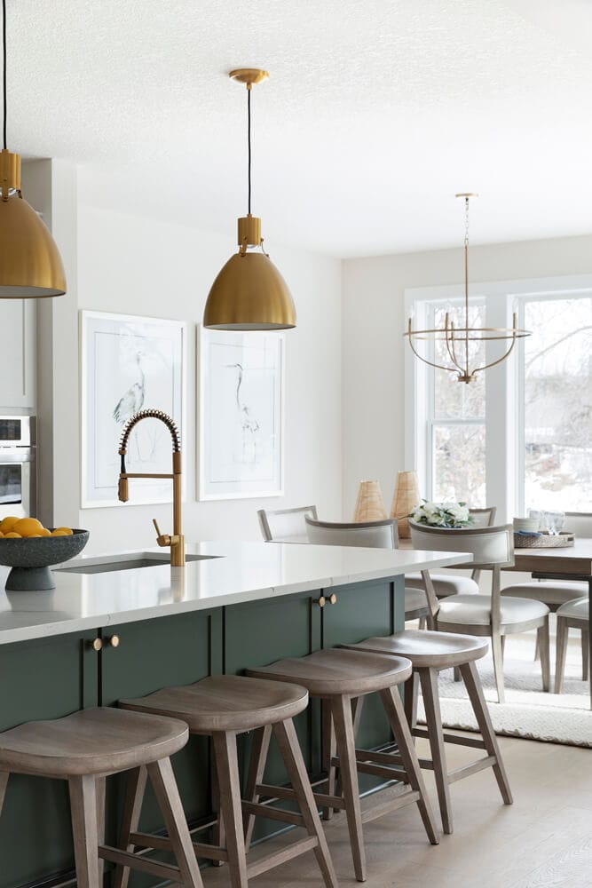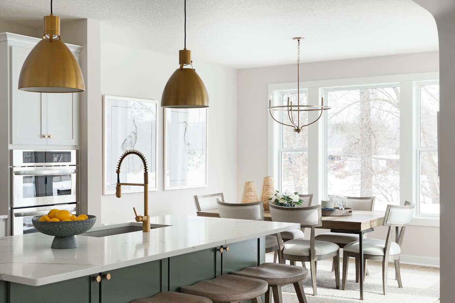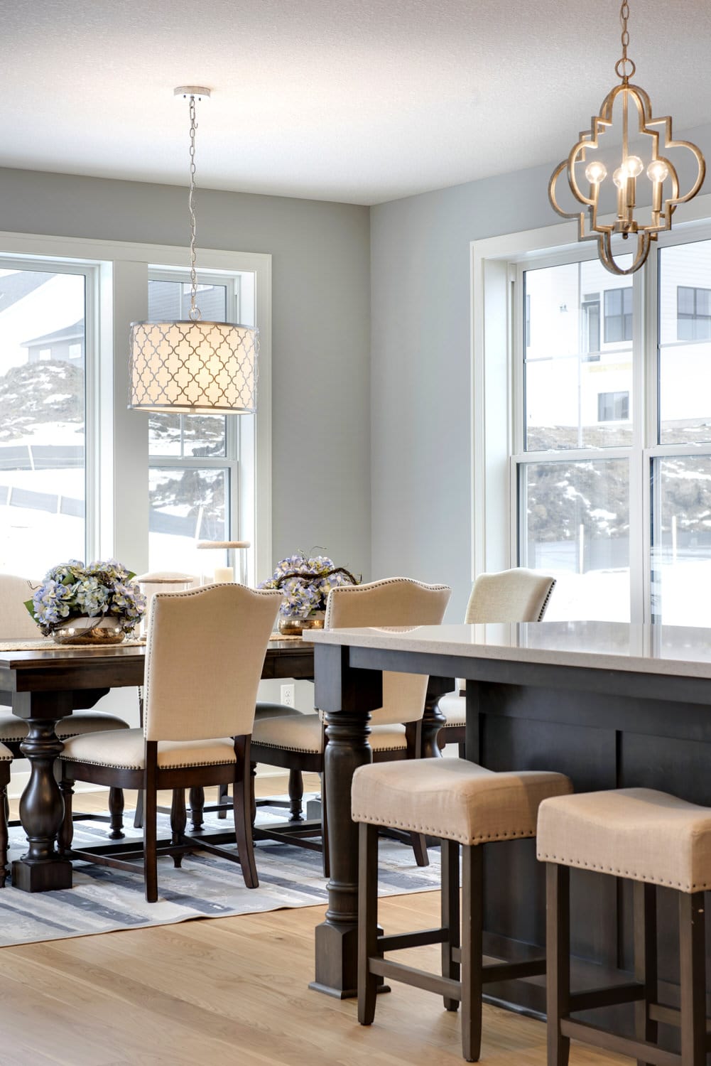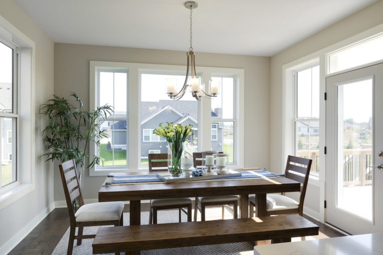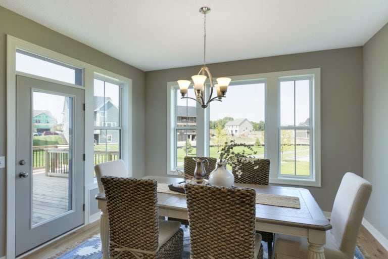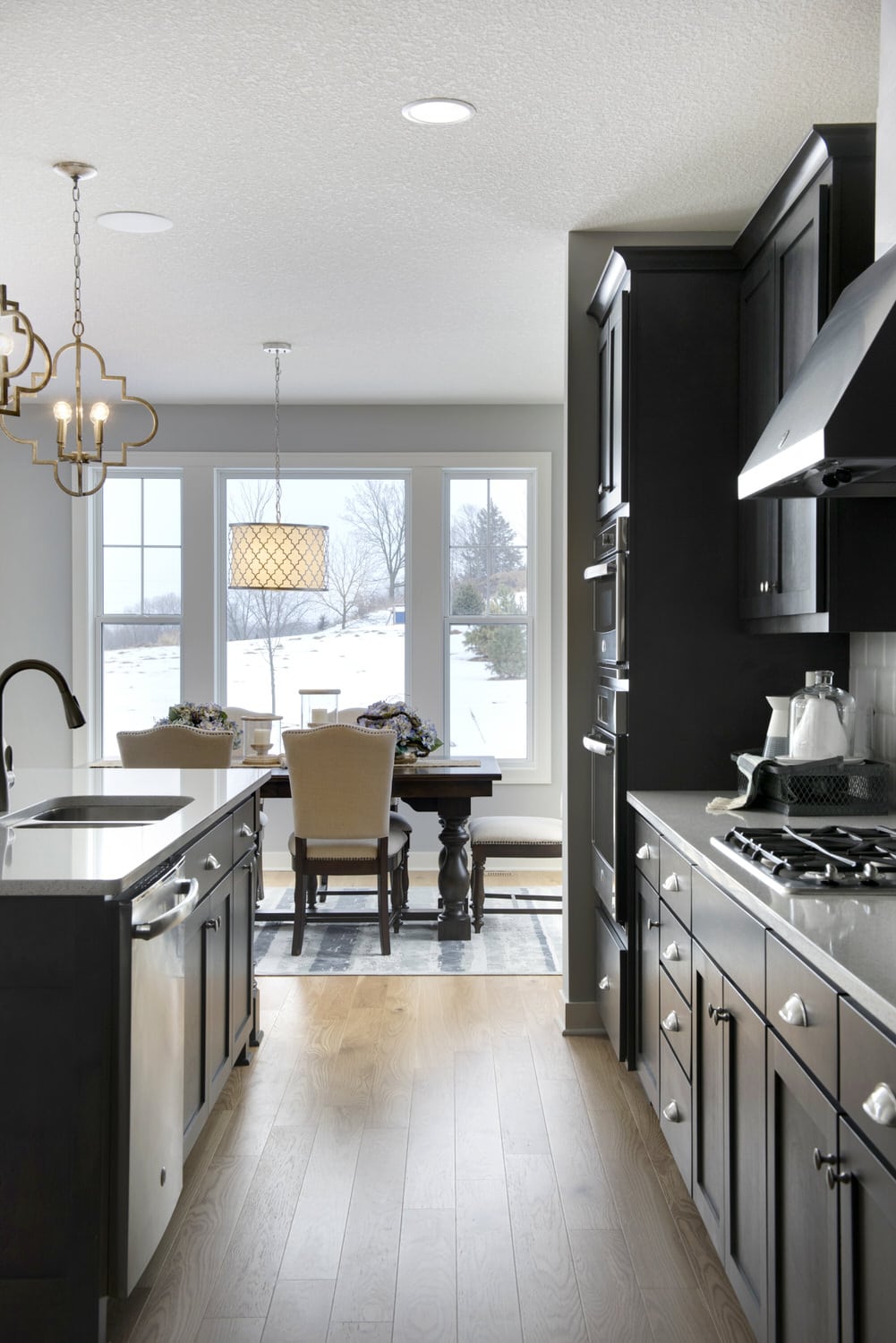 - Open L-shaped kitchen with center island and adjacent dining with access to optional deck, patio or screen porch