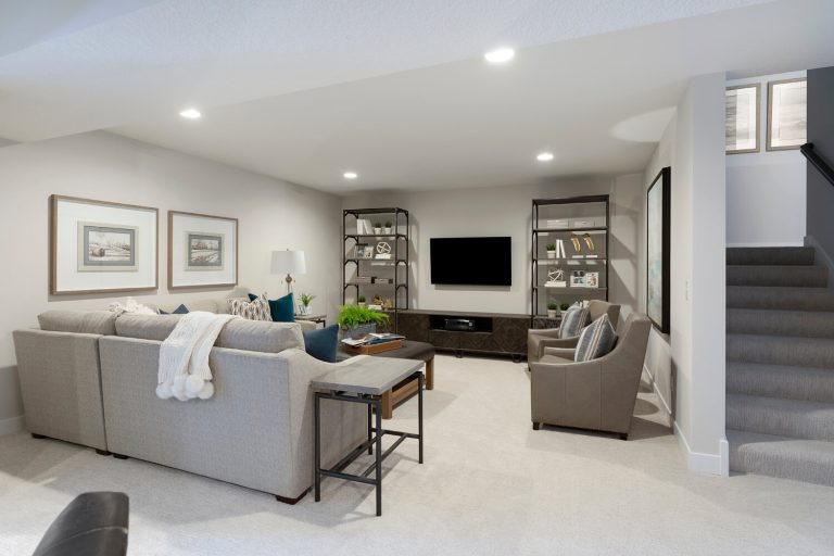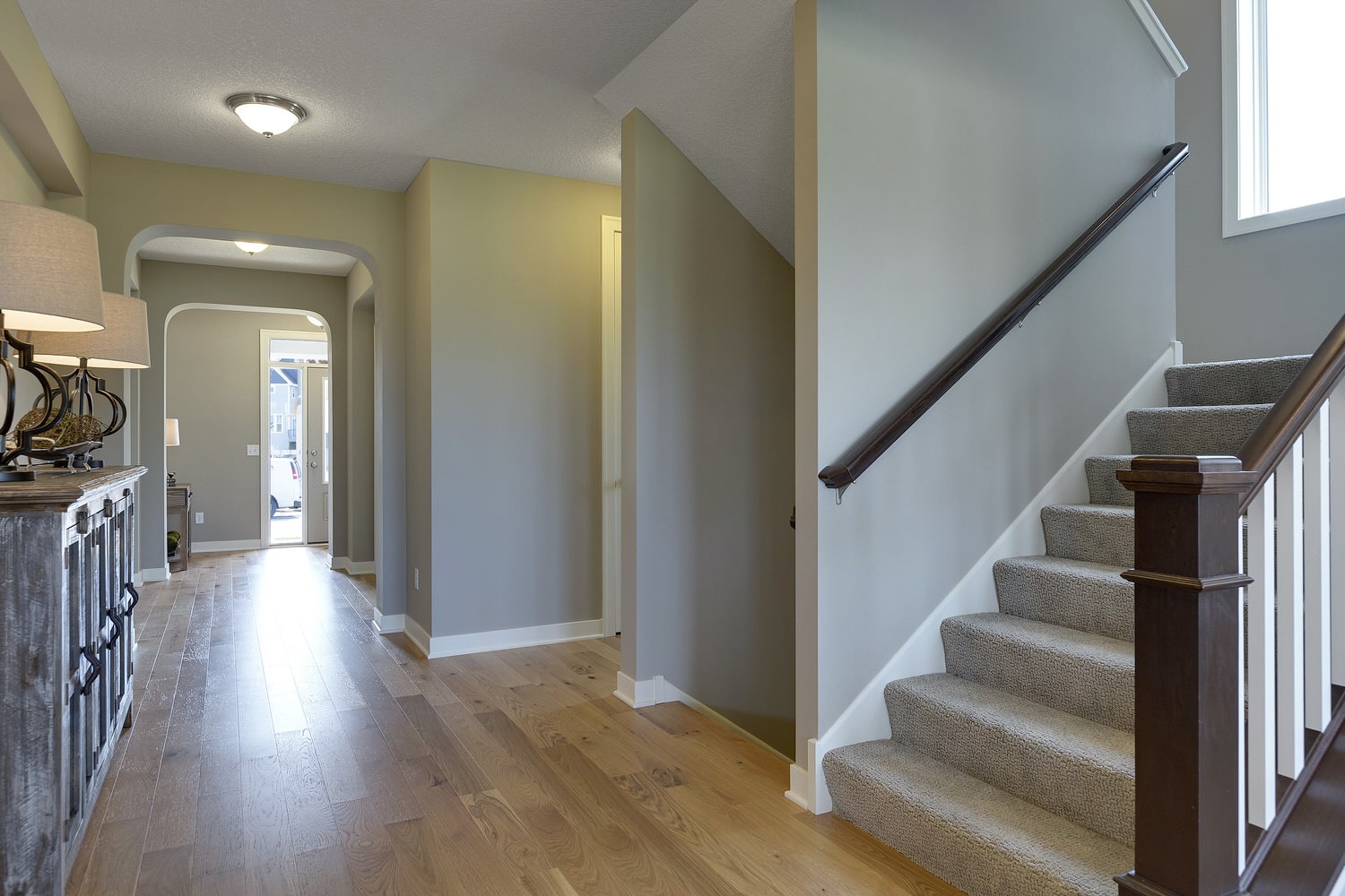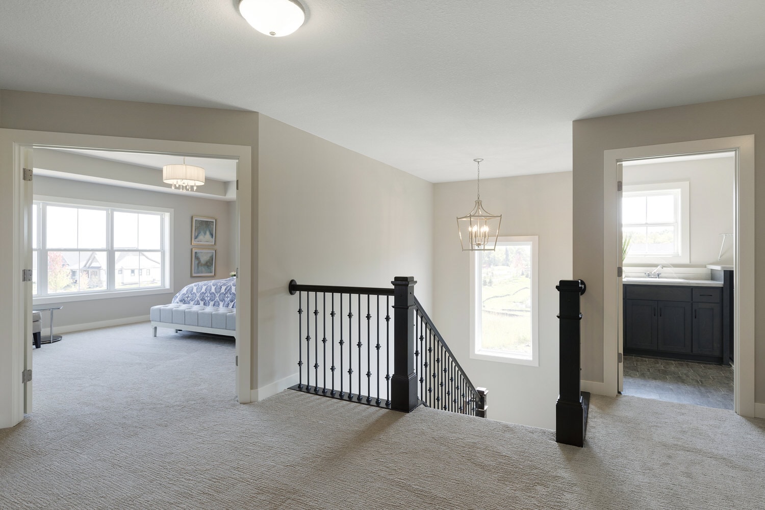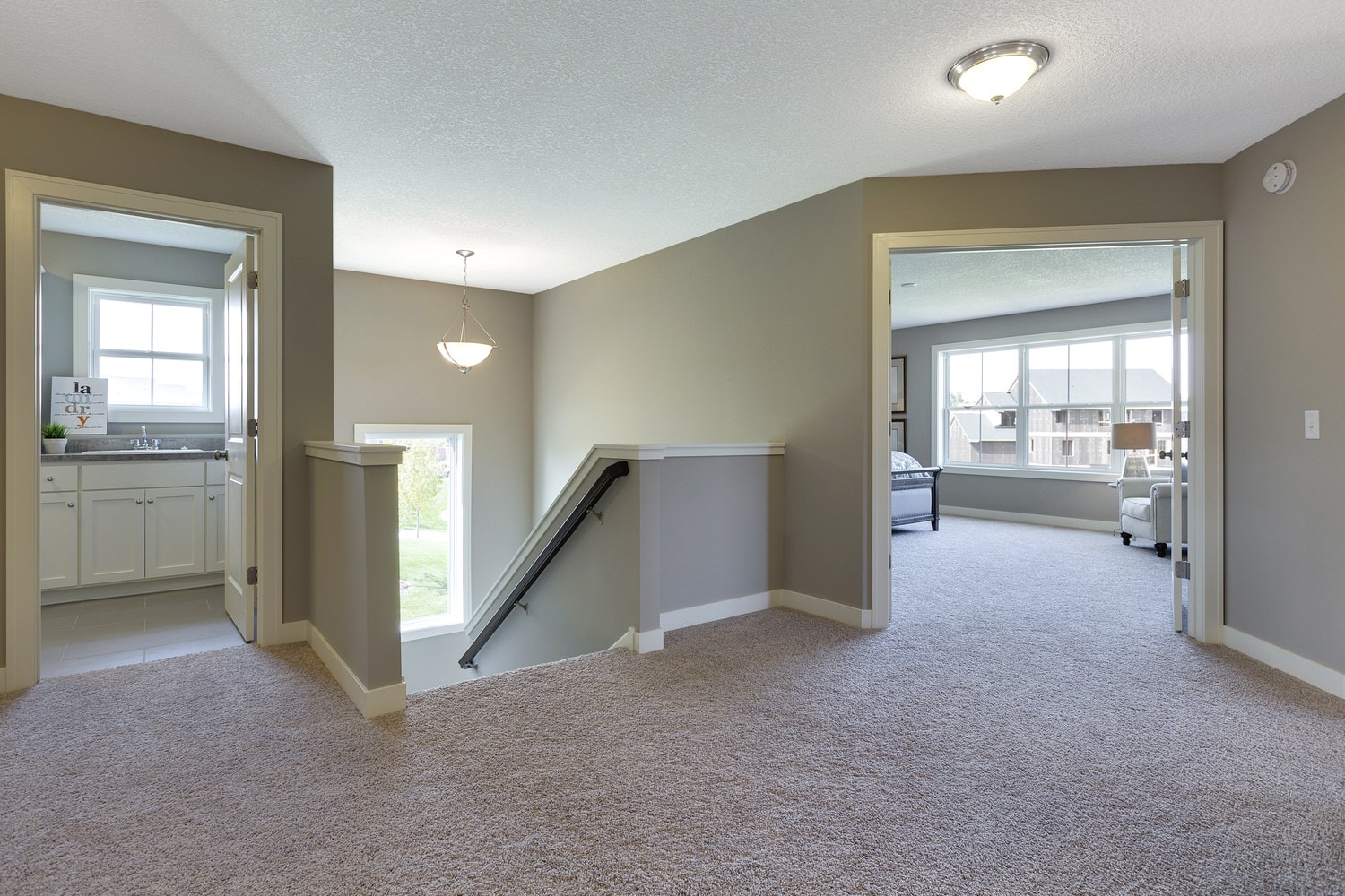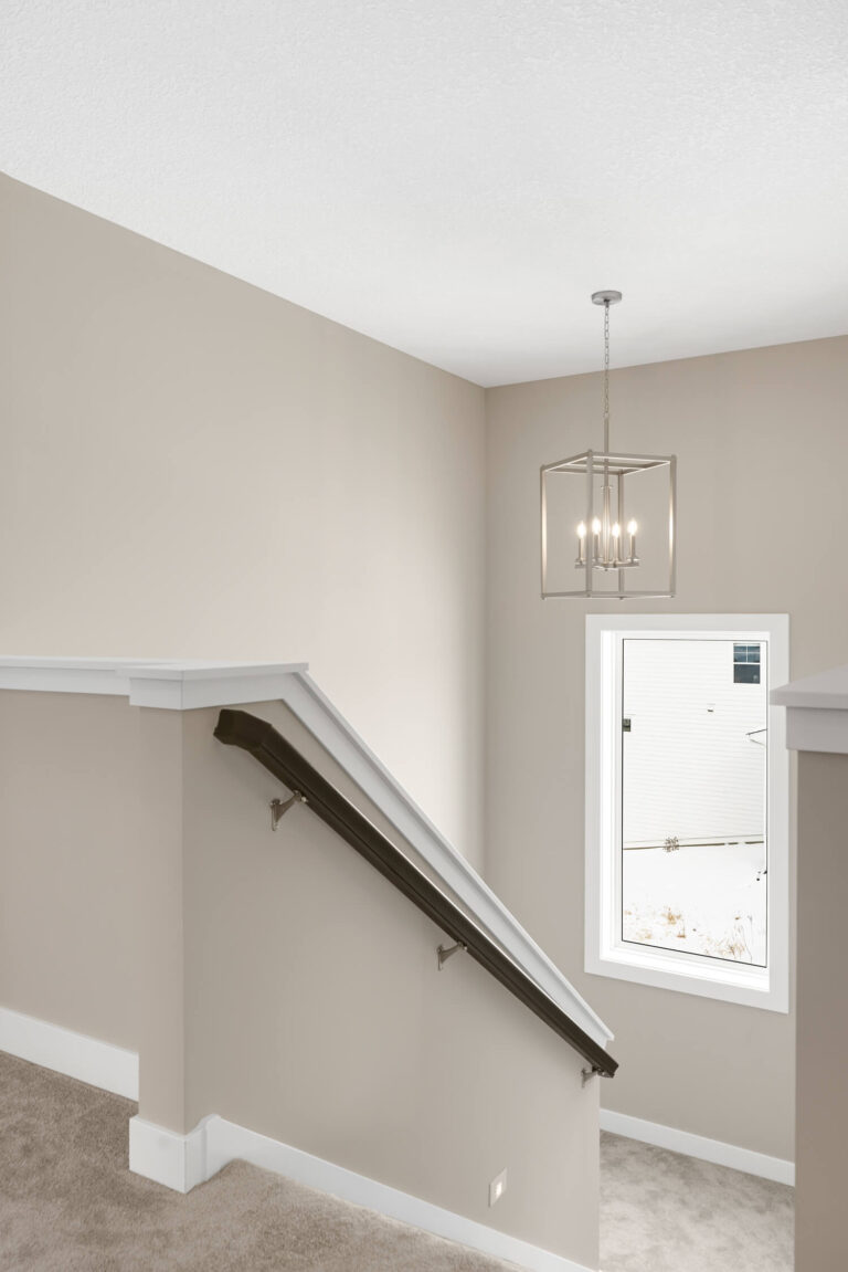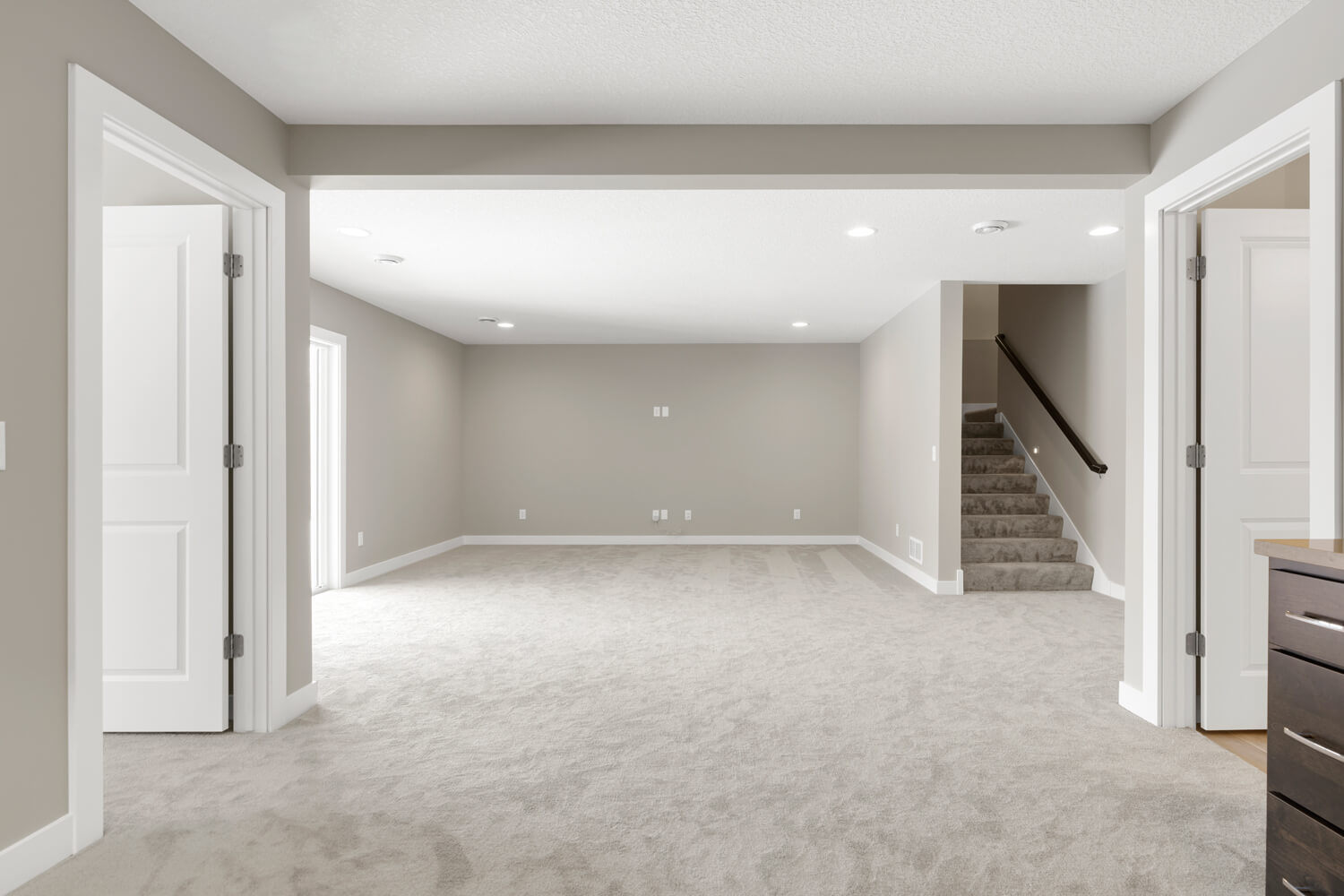 - Finished staircase to lower level with space for future family room, additional bedroom, bathroom, and storage
