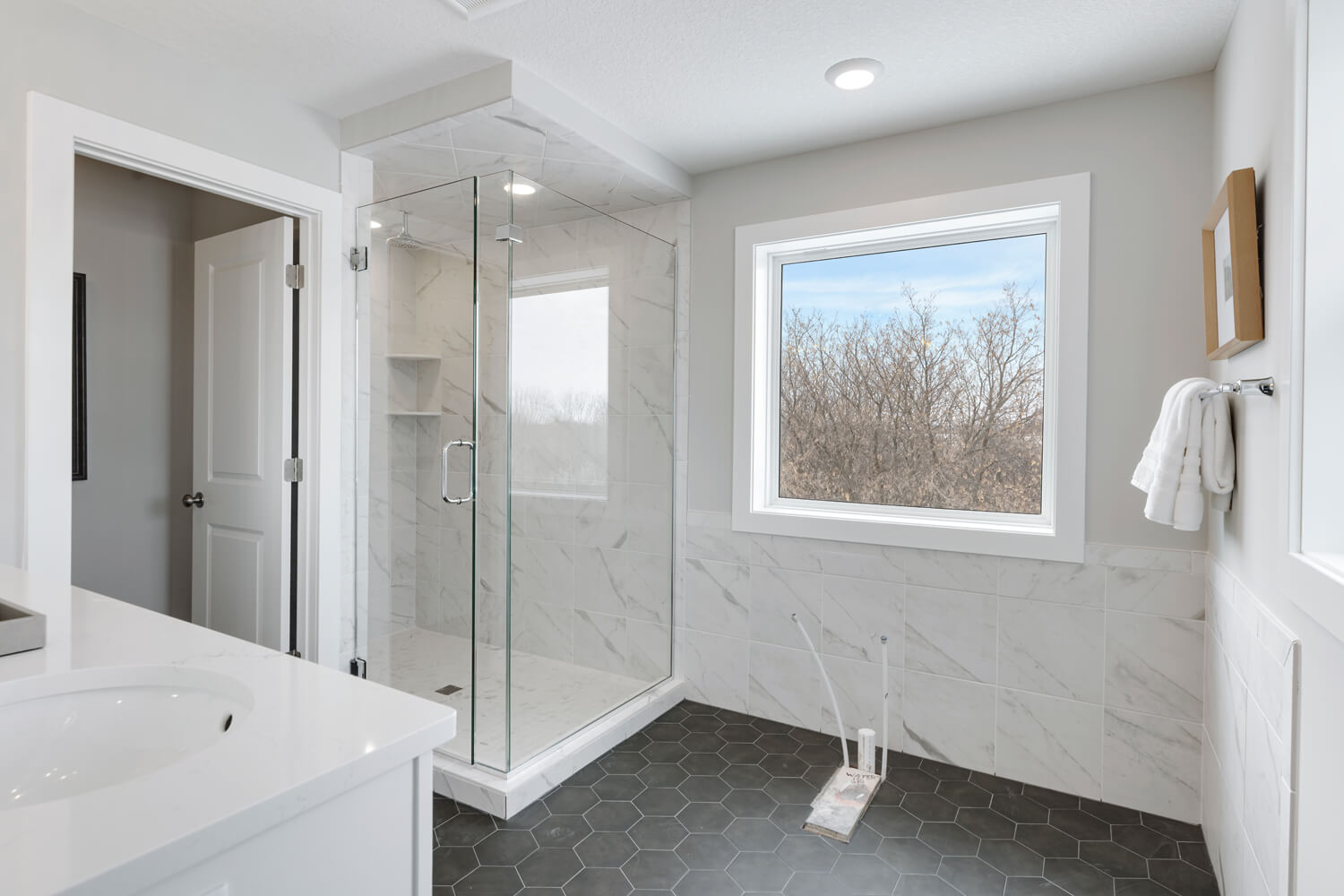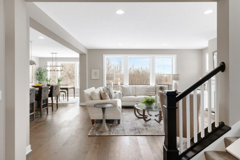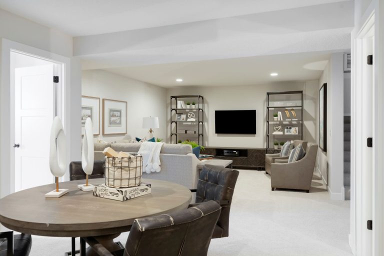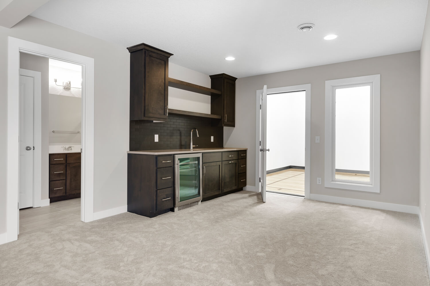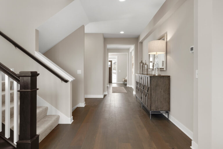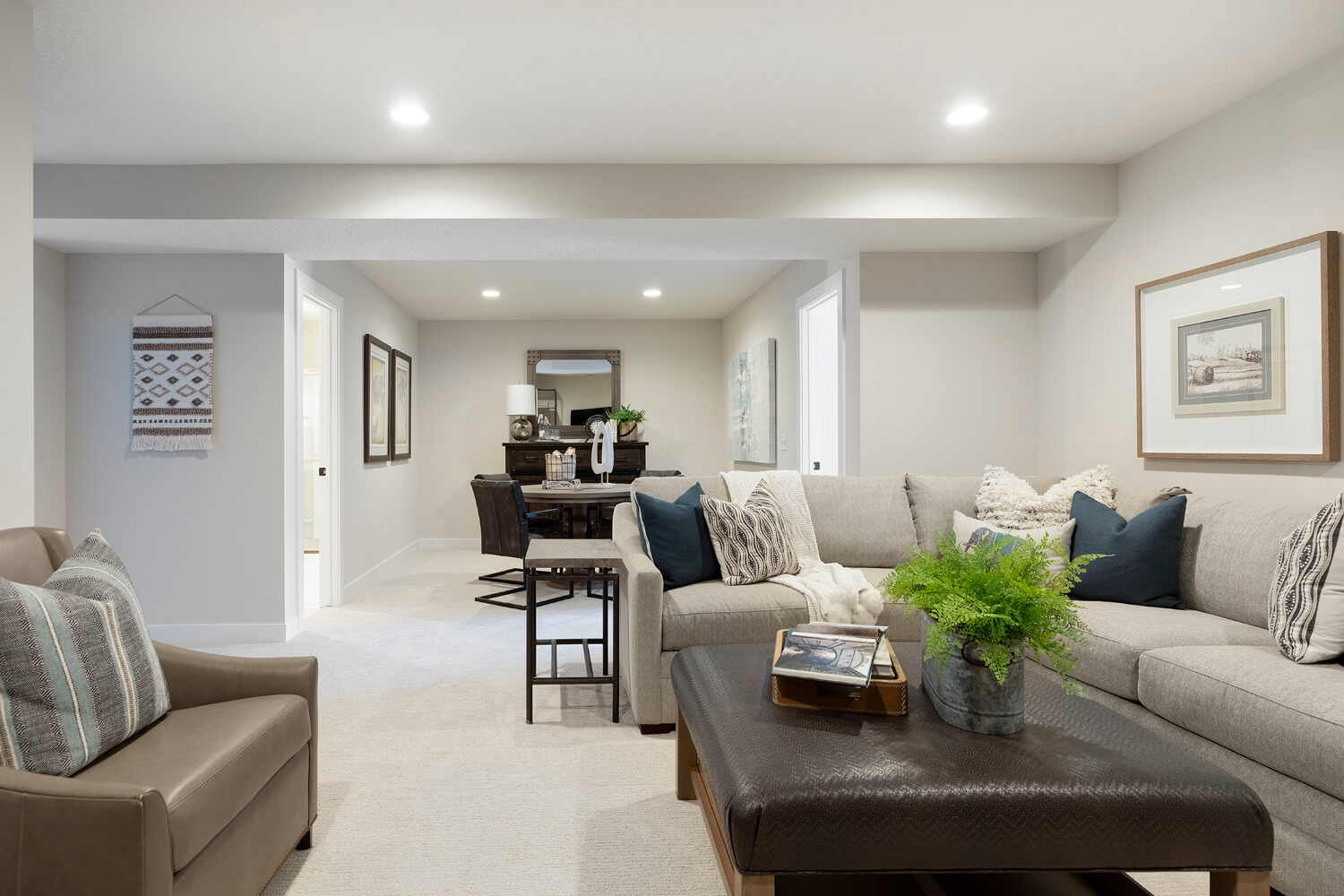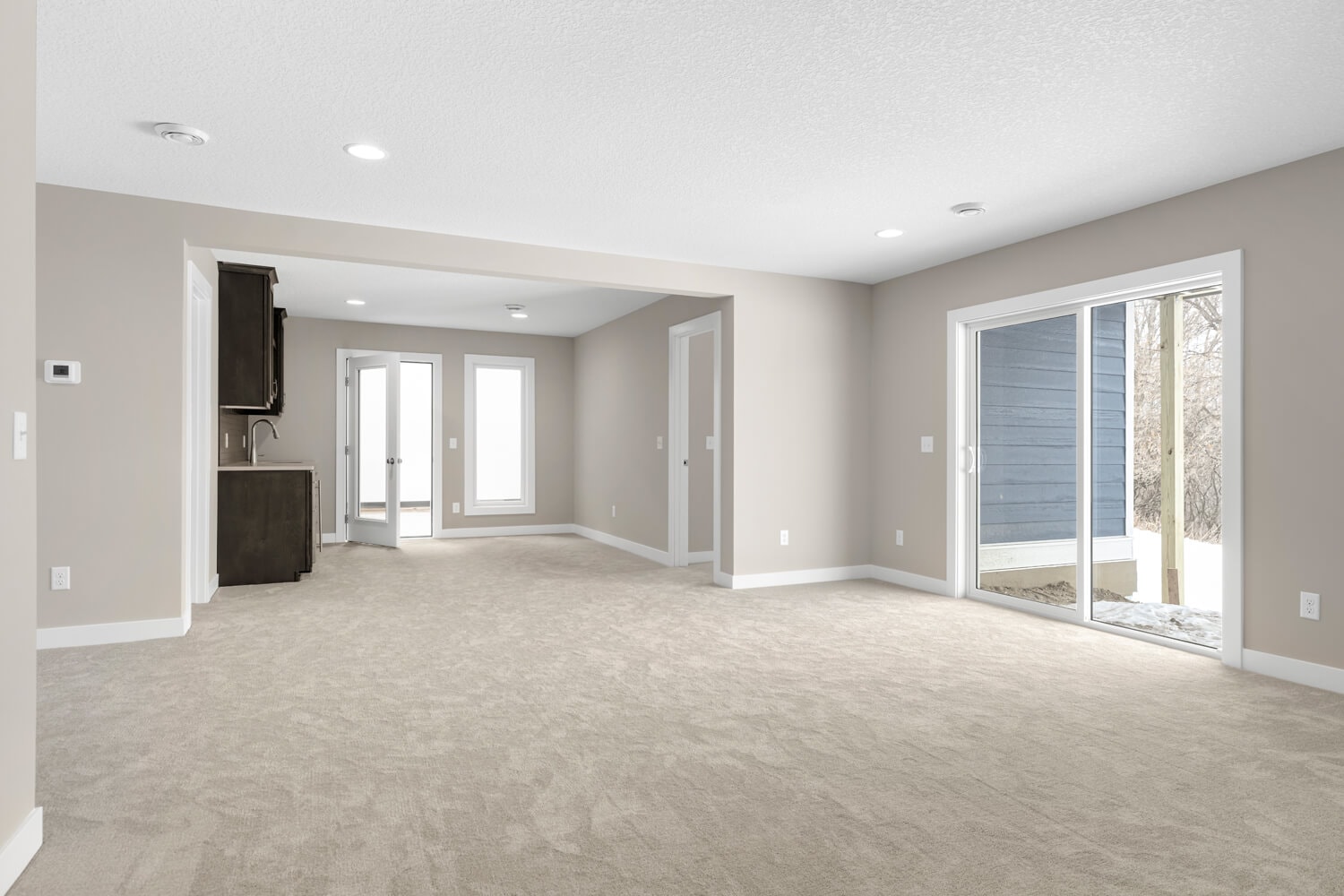 - Finished staircase to lower level with space for future family room, additional bedroom, bathroom, and storage
