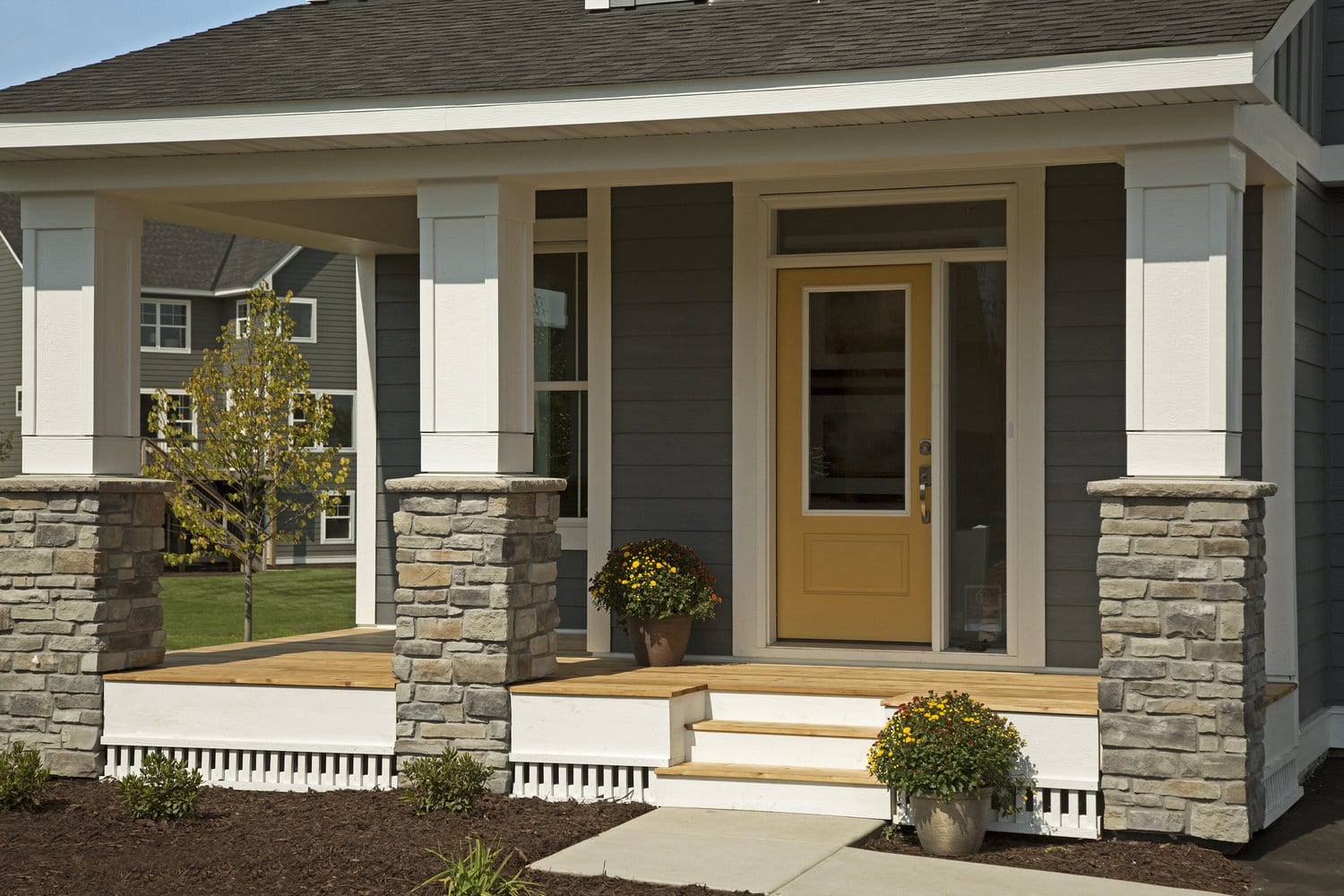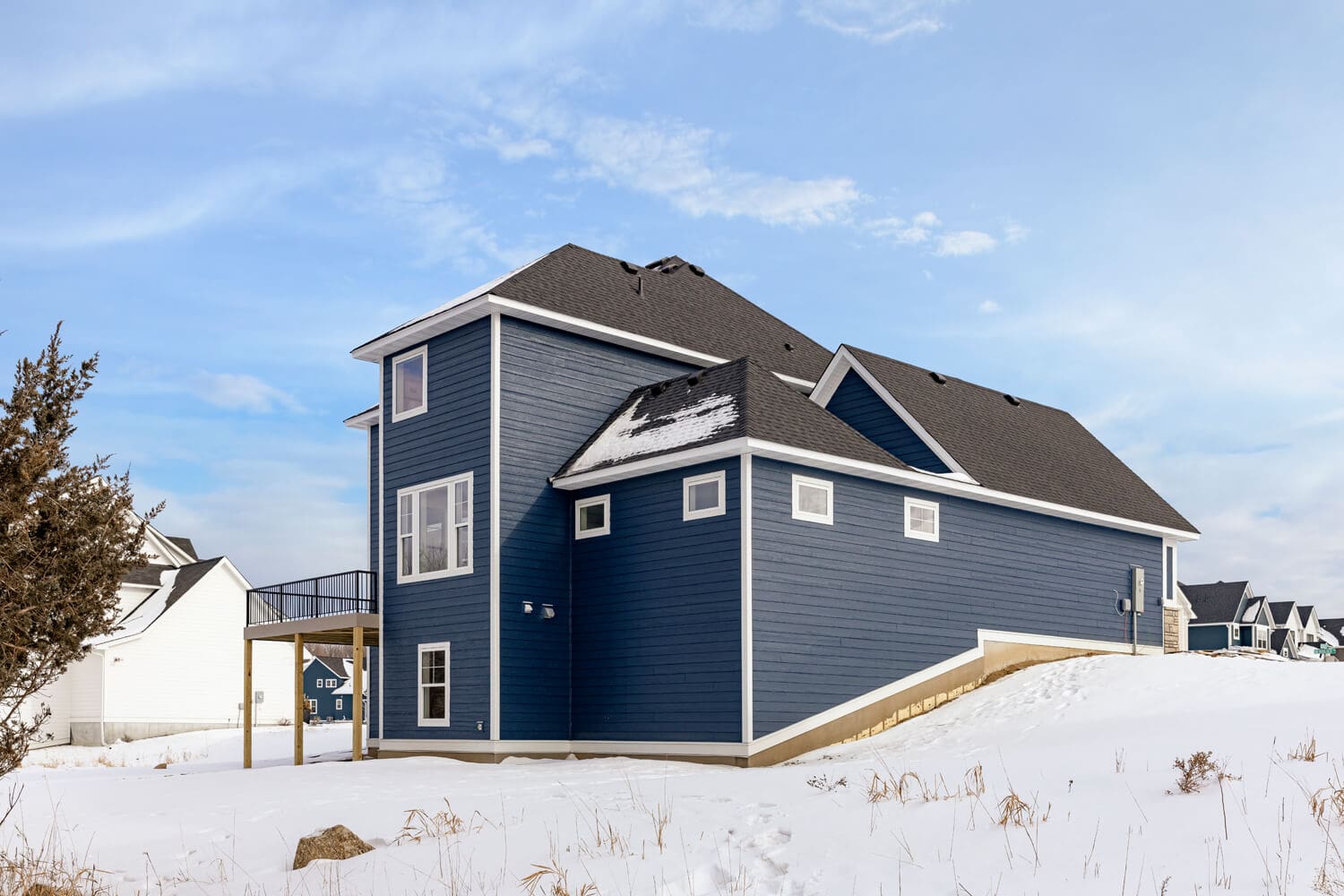 - LP SmartSide® prefinished lap siding with 4-sided architectural detail, including wrapped windows and trim boards
