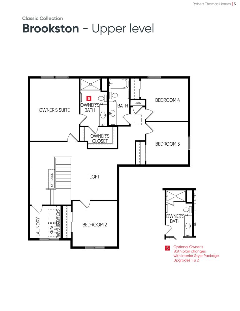 - Owner’s suite features double vanity, large shower, and walk-in closet
