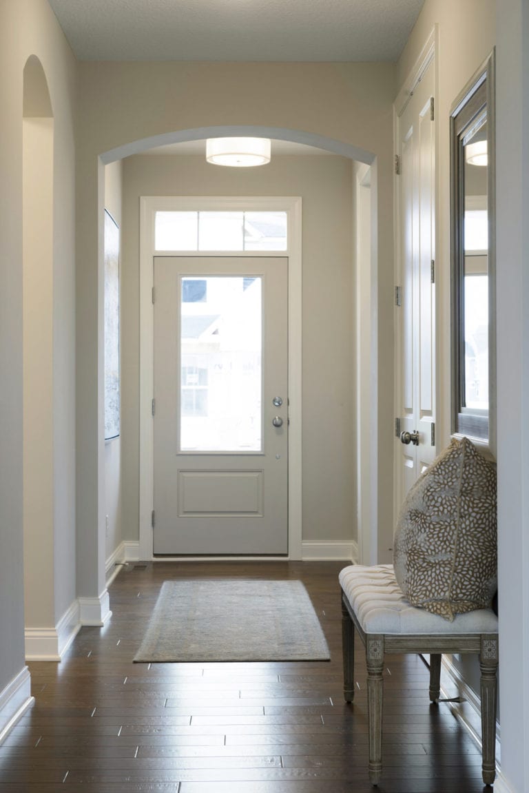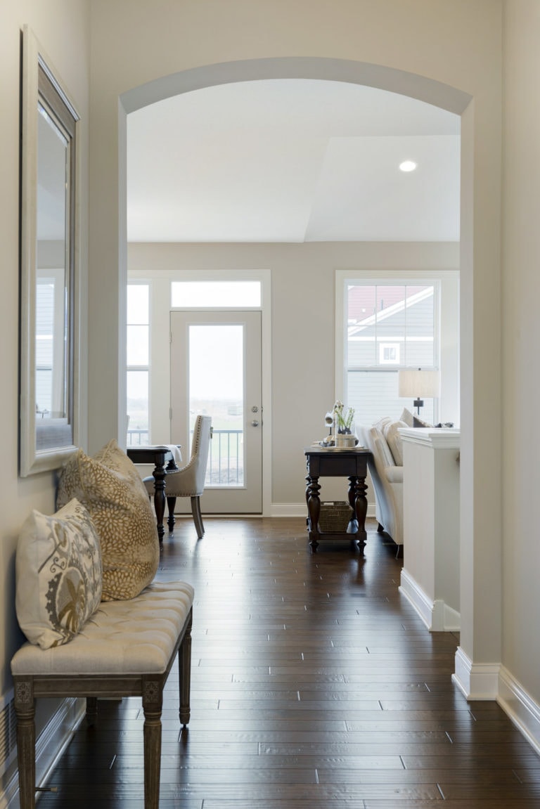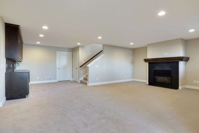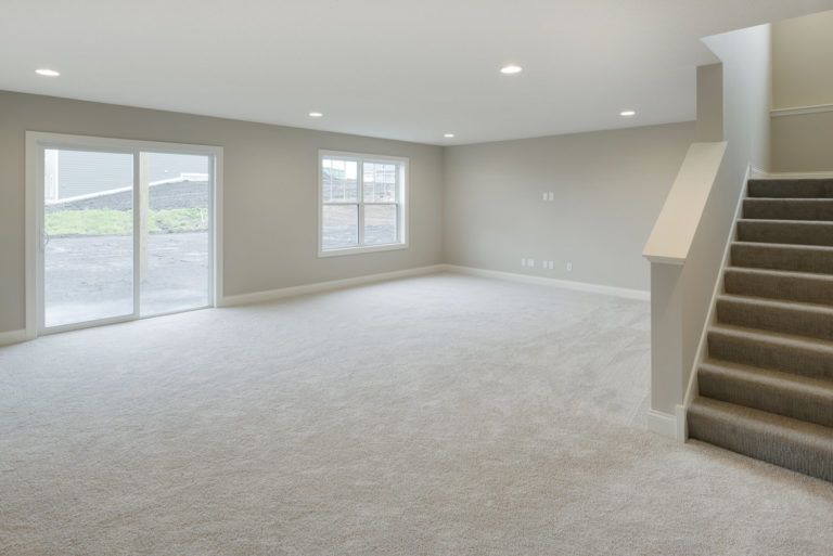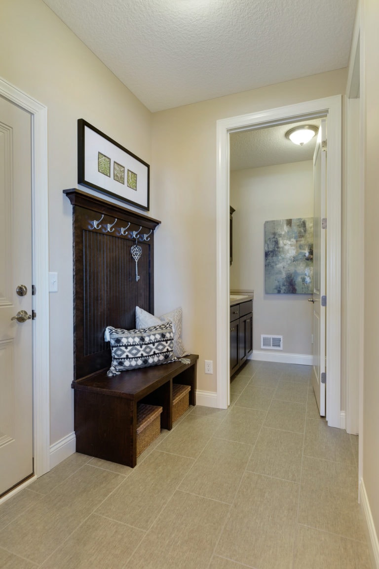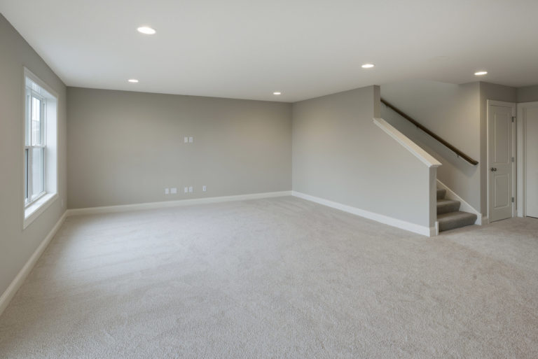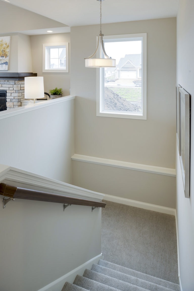 - Finished staircase to lower level with optional railing and bench seat