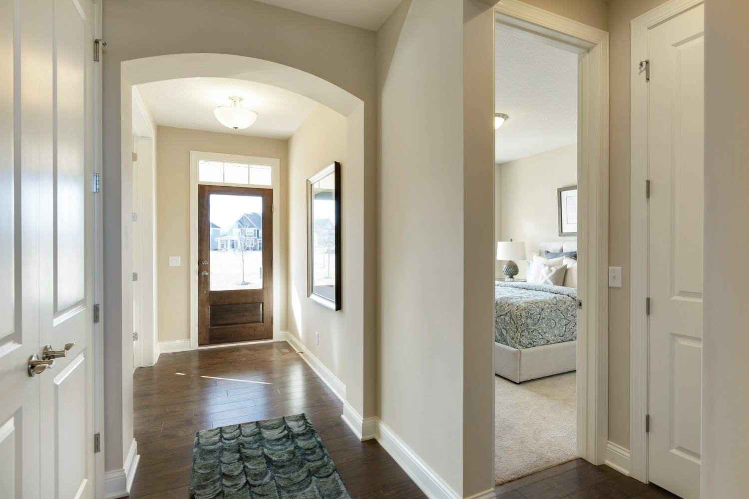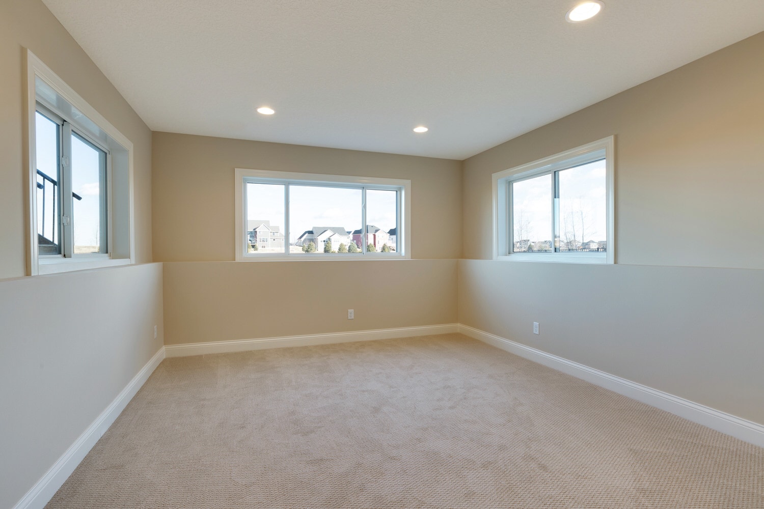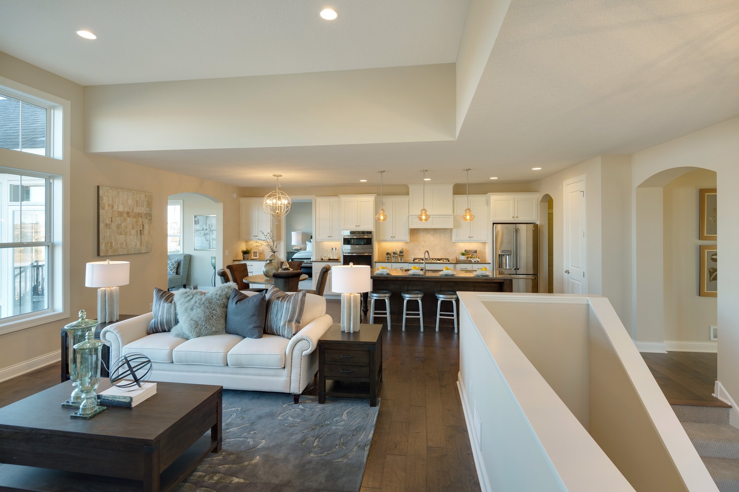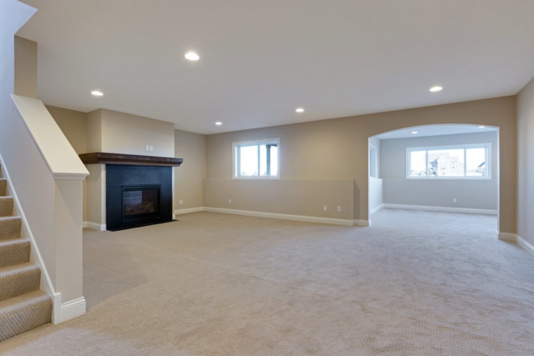 - Finished staircase to lower level with optional railing and bench seat