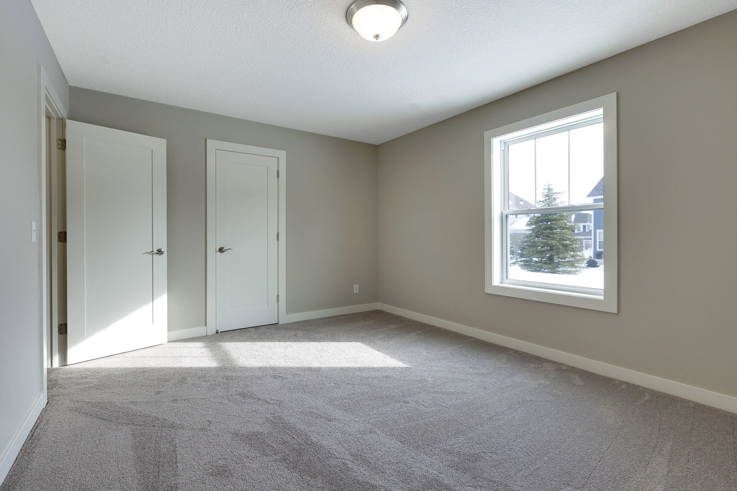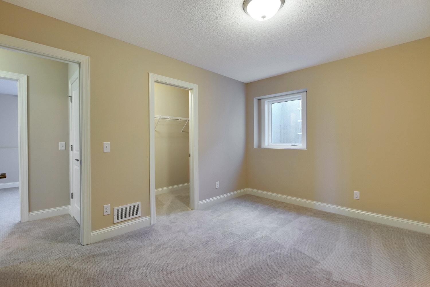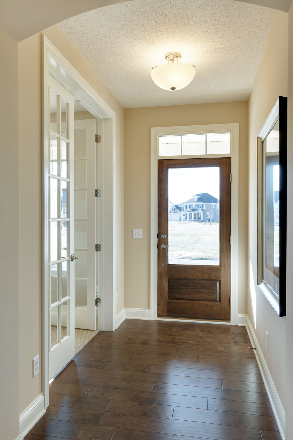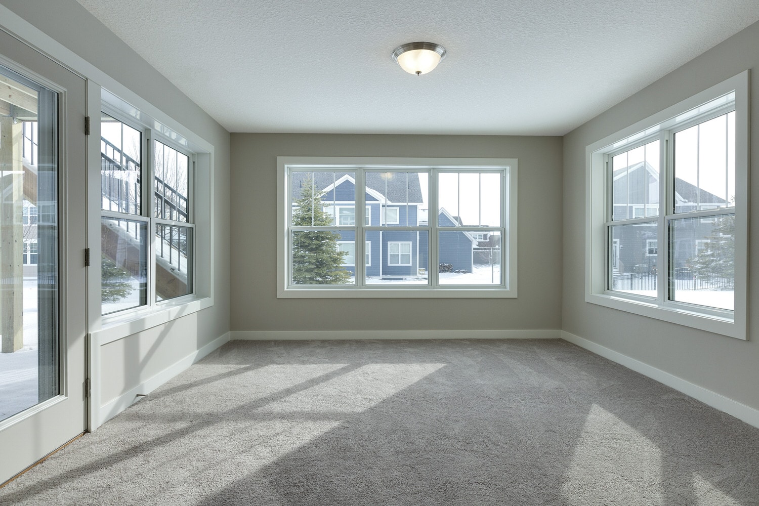 - Finished staircase to lower level with optional railing and bench seat