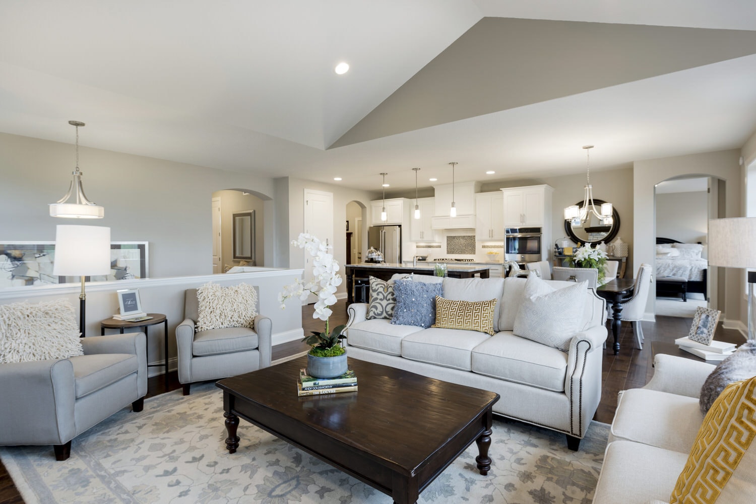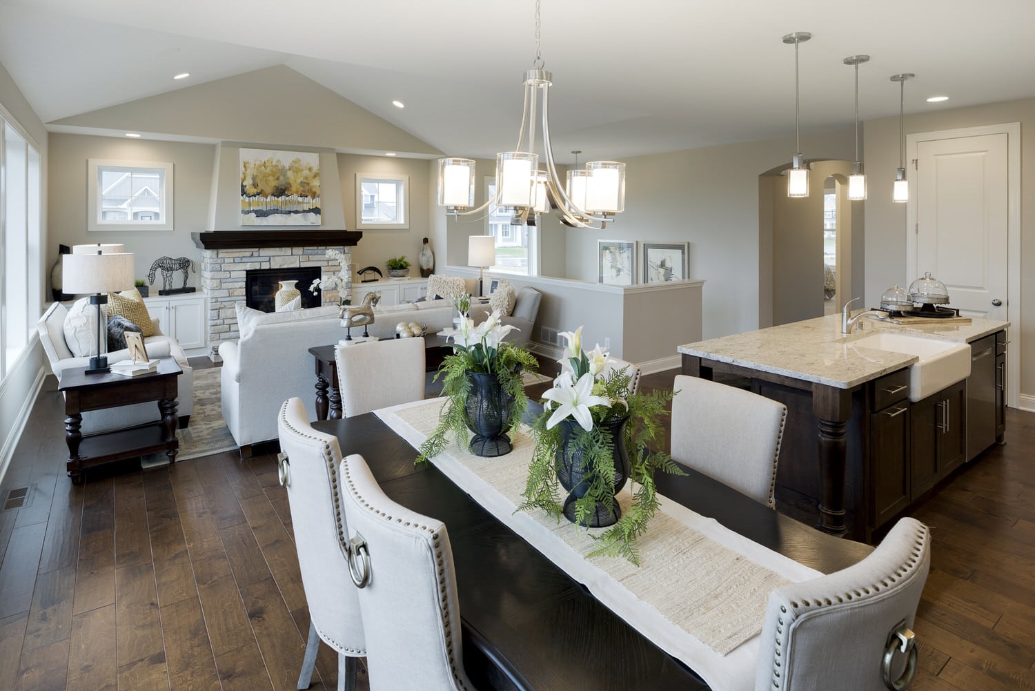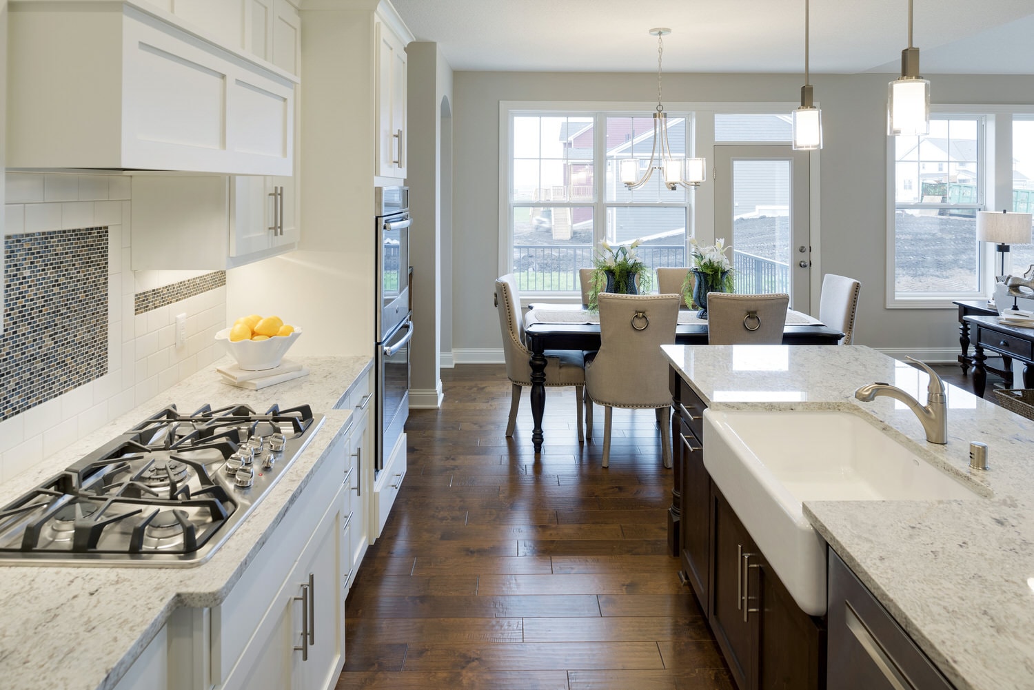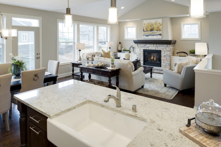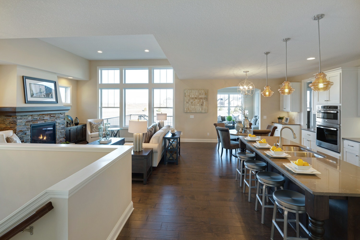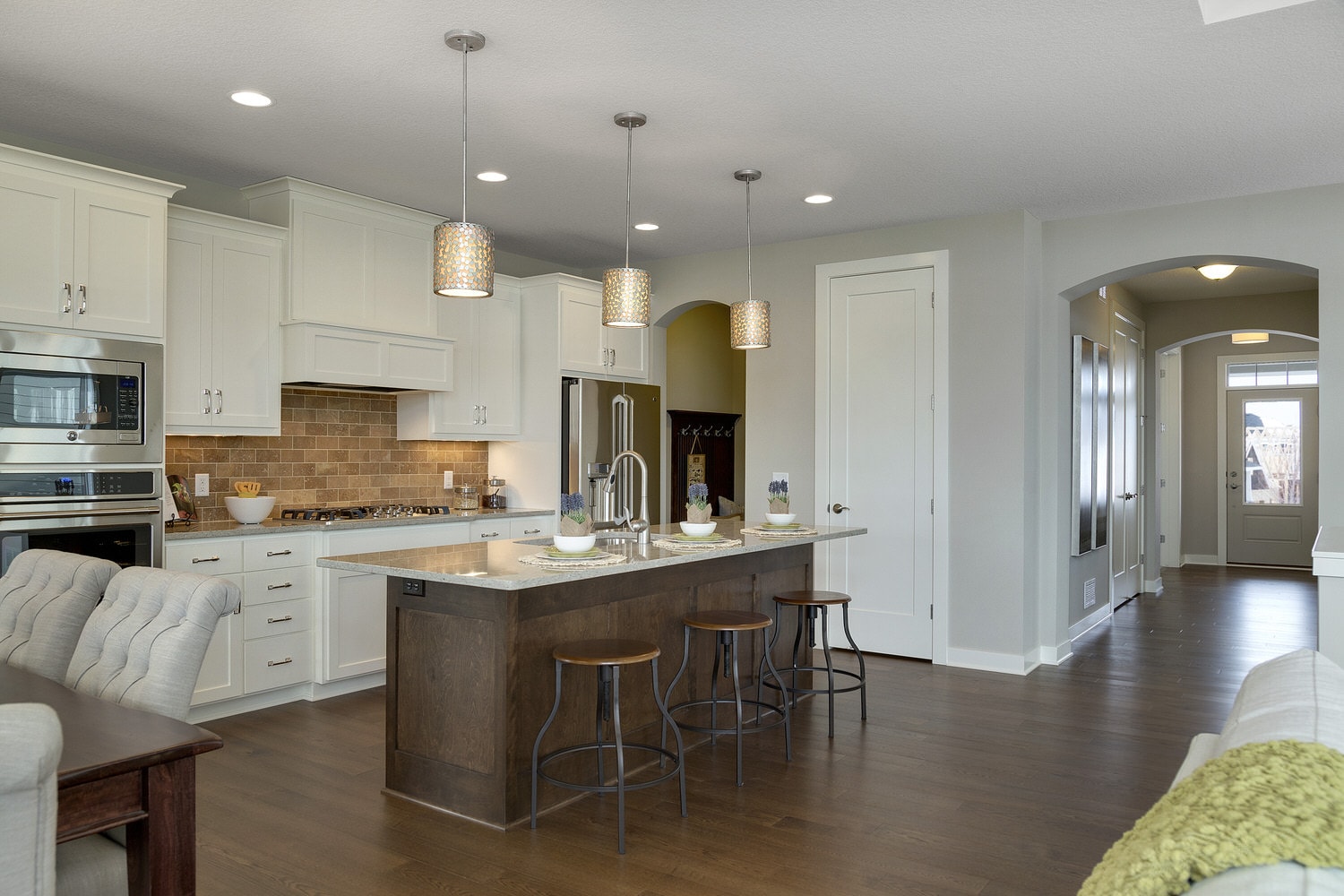 - Open concept center-island kitchen with adjacent dining