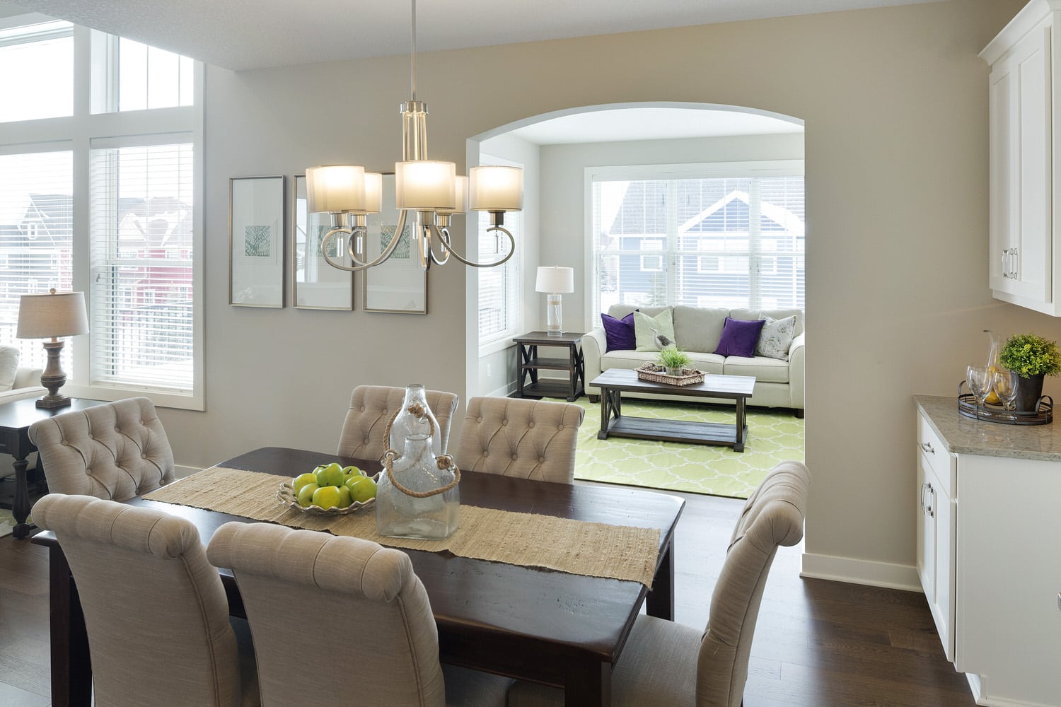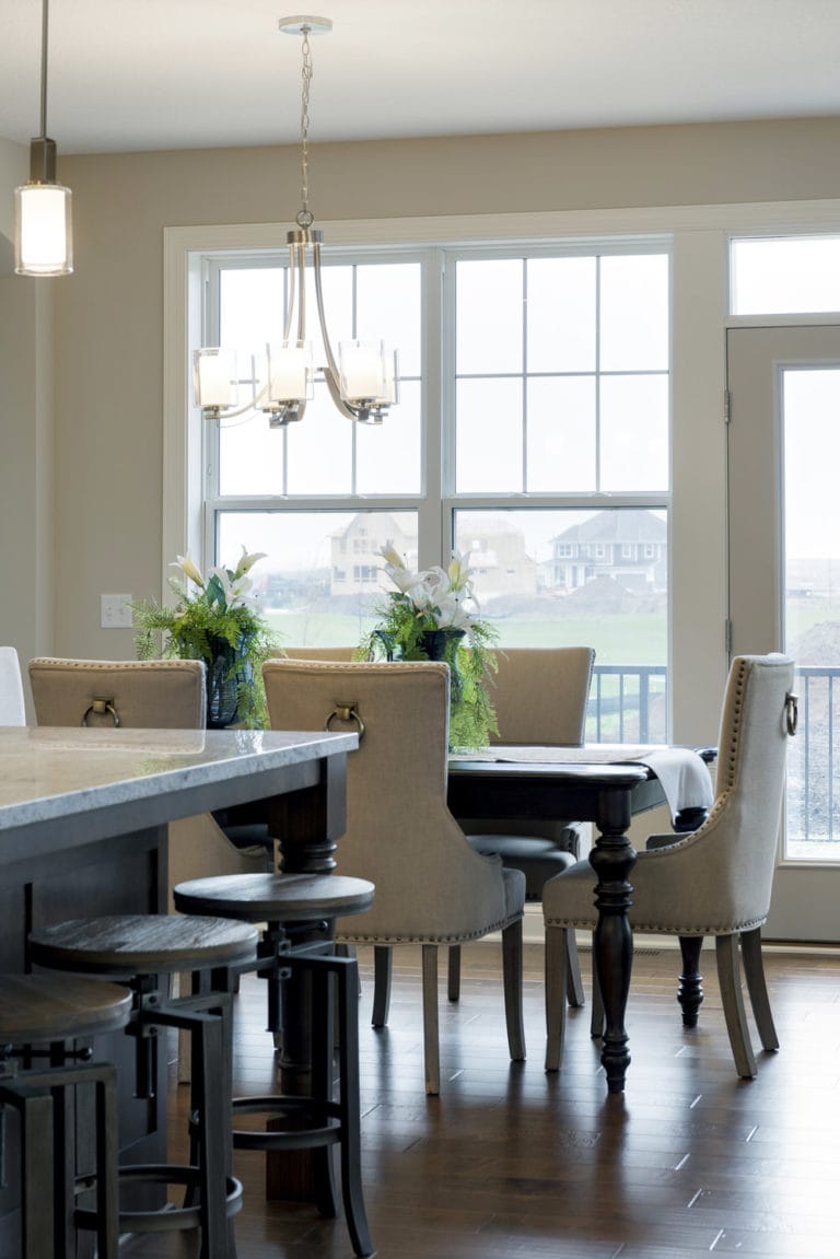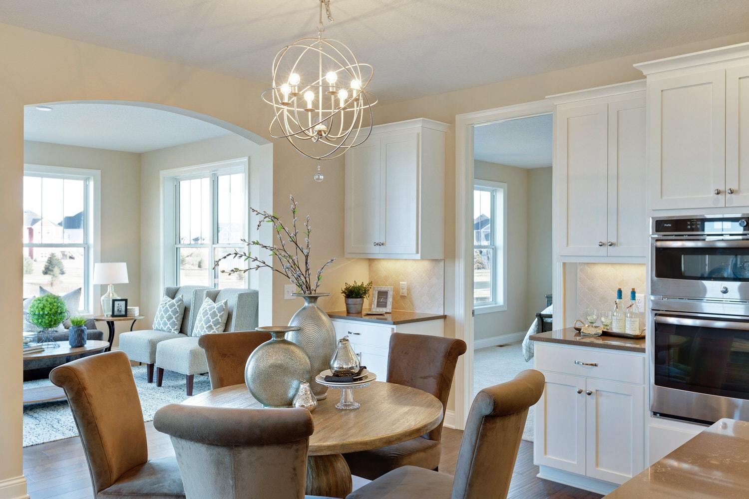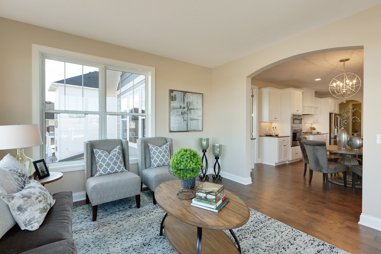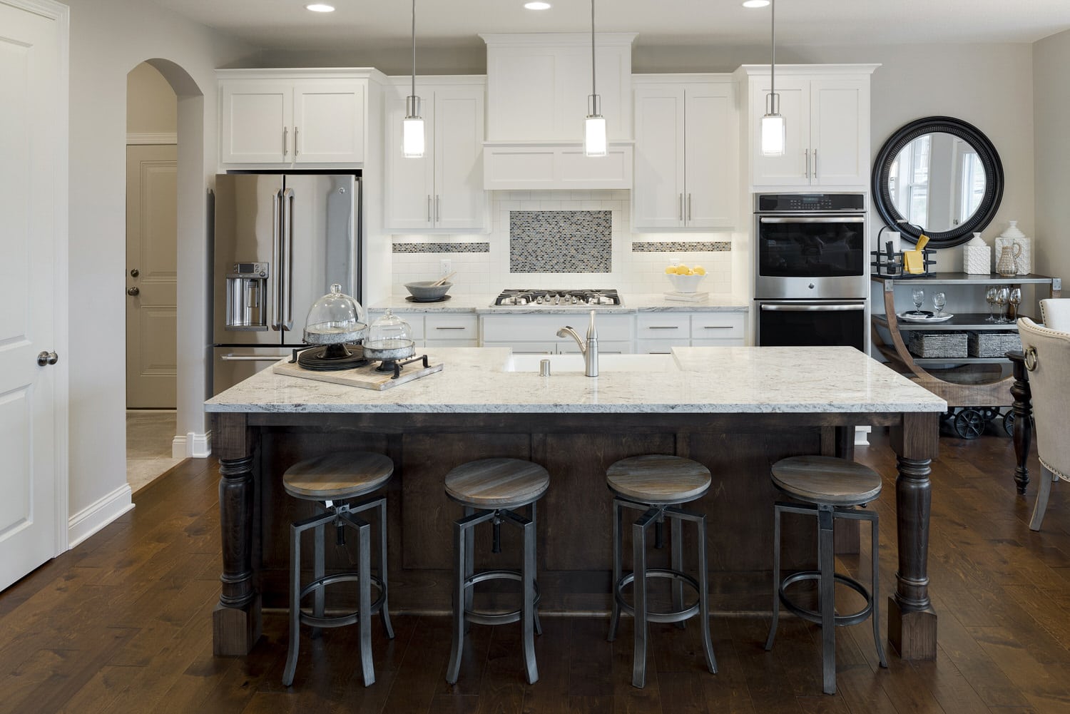 - Open concept center-island kitchen with adjacent dining