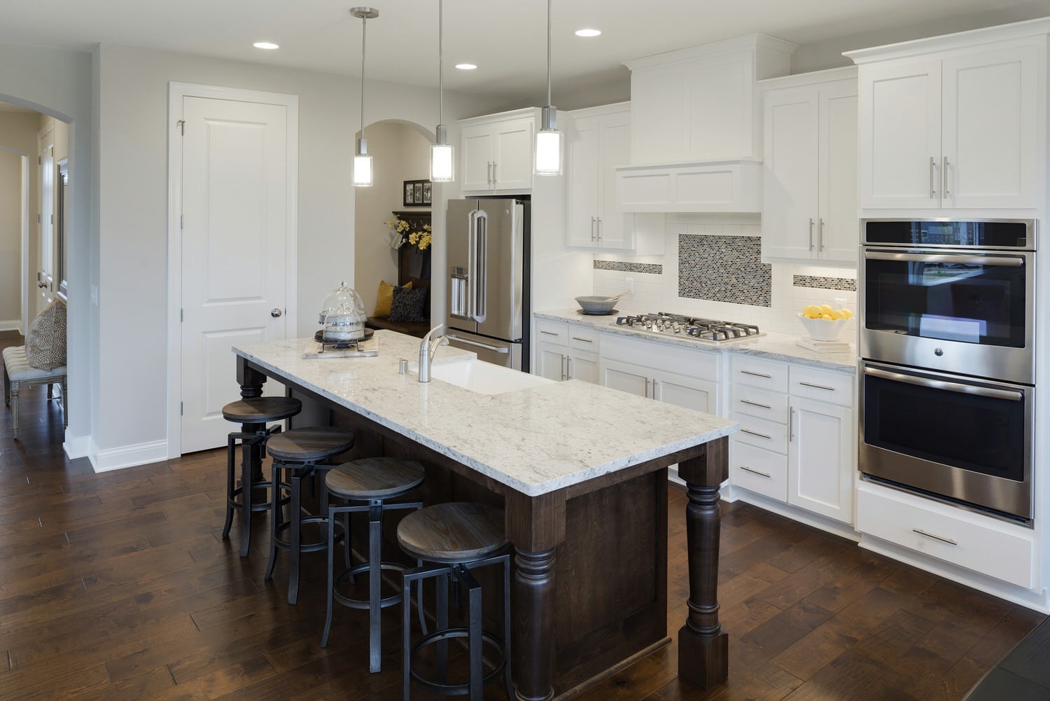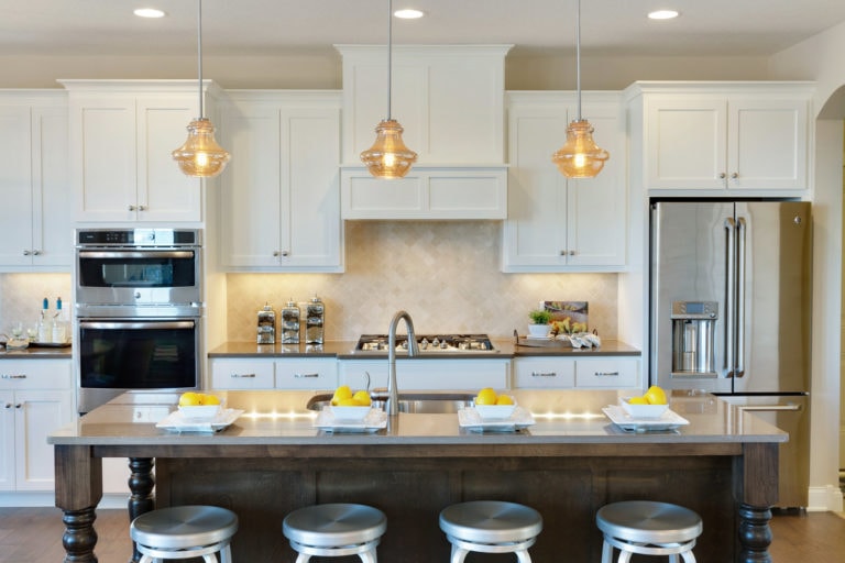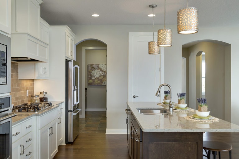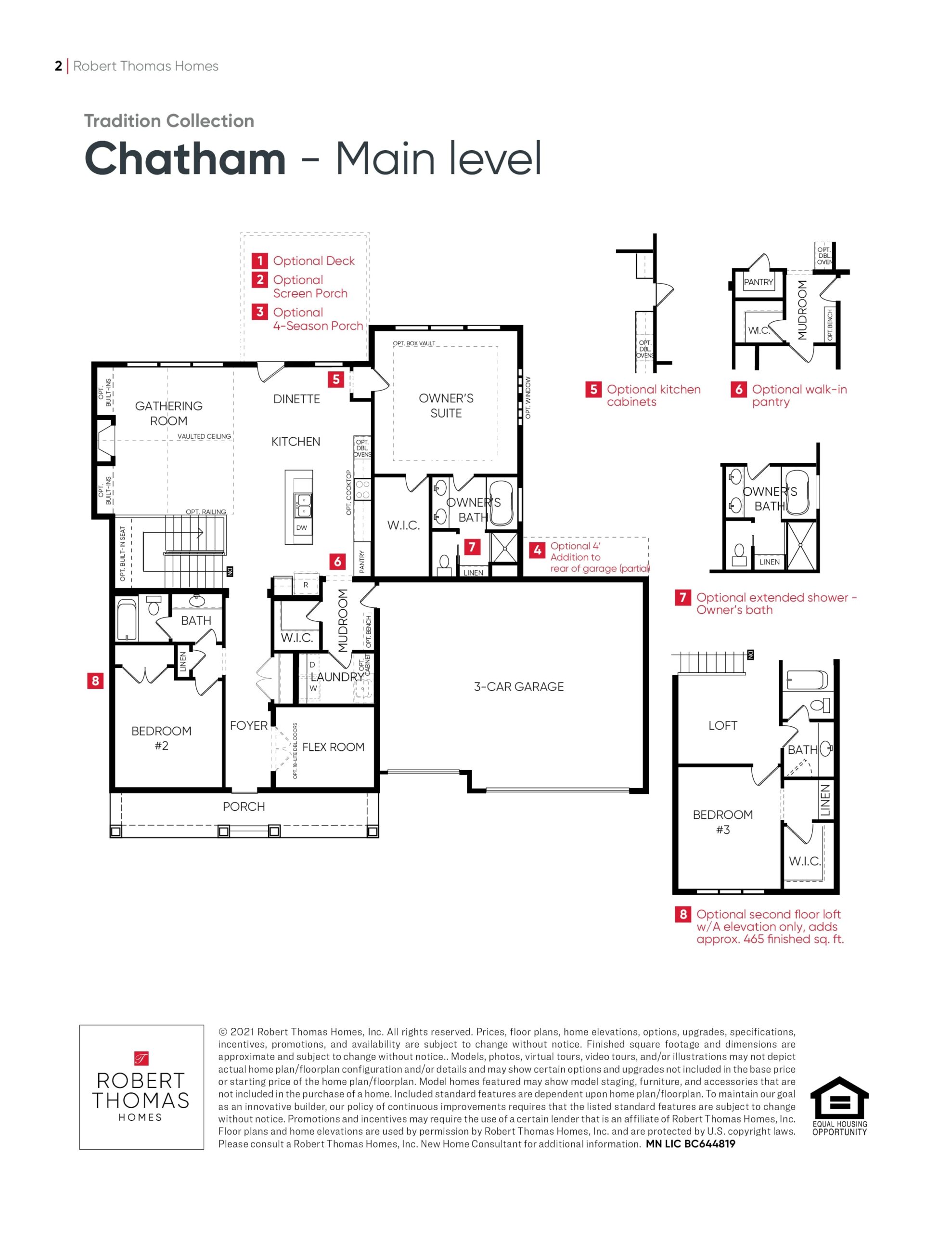 - Kitchen options include additional cabinetry, built-in oven column, cooktop, and walk-in pantry