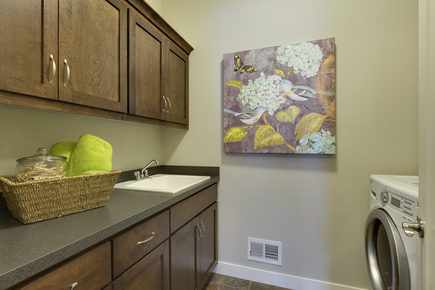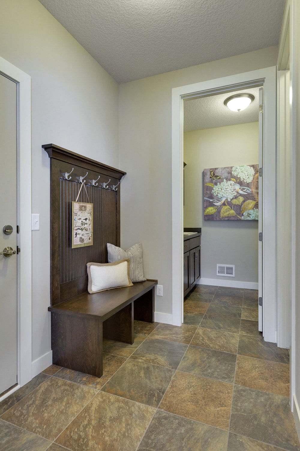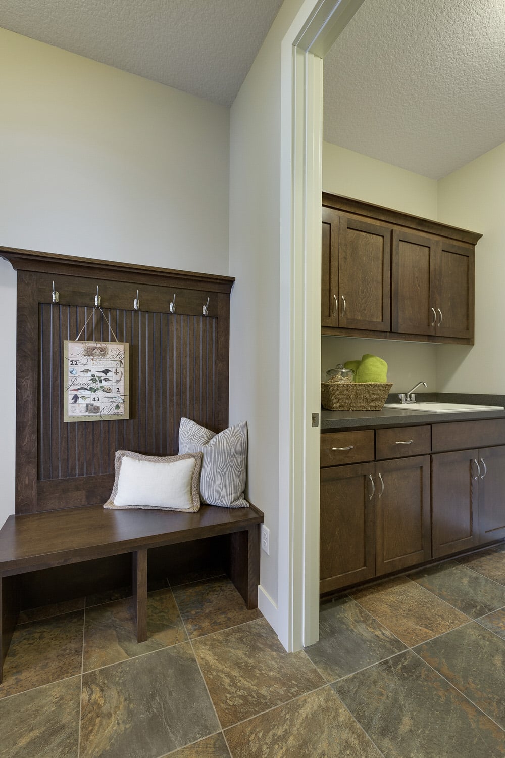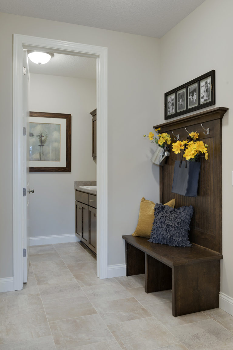 - Convenient main level laundry and mudroom with large walk-in closet and optional bench