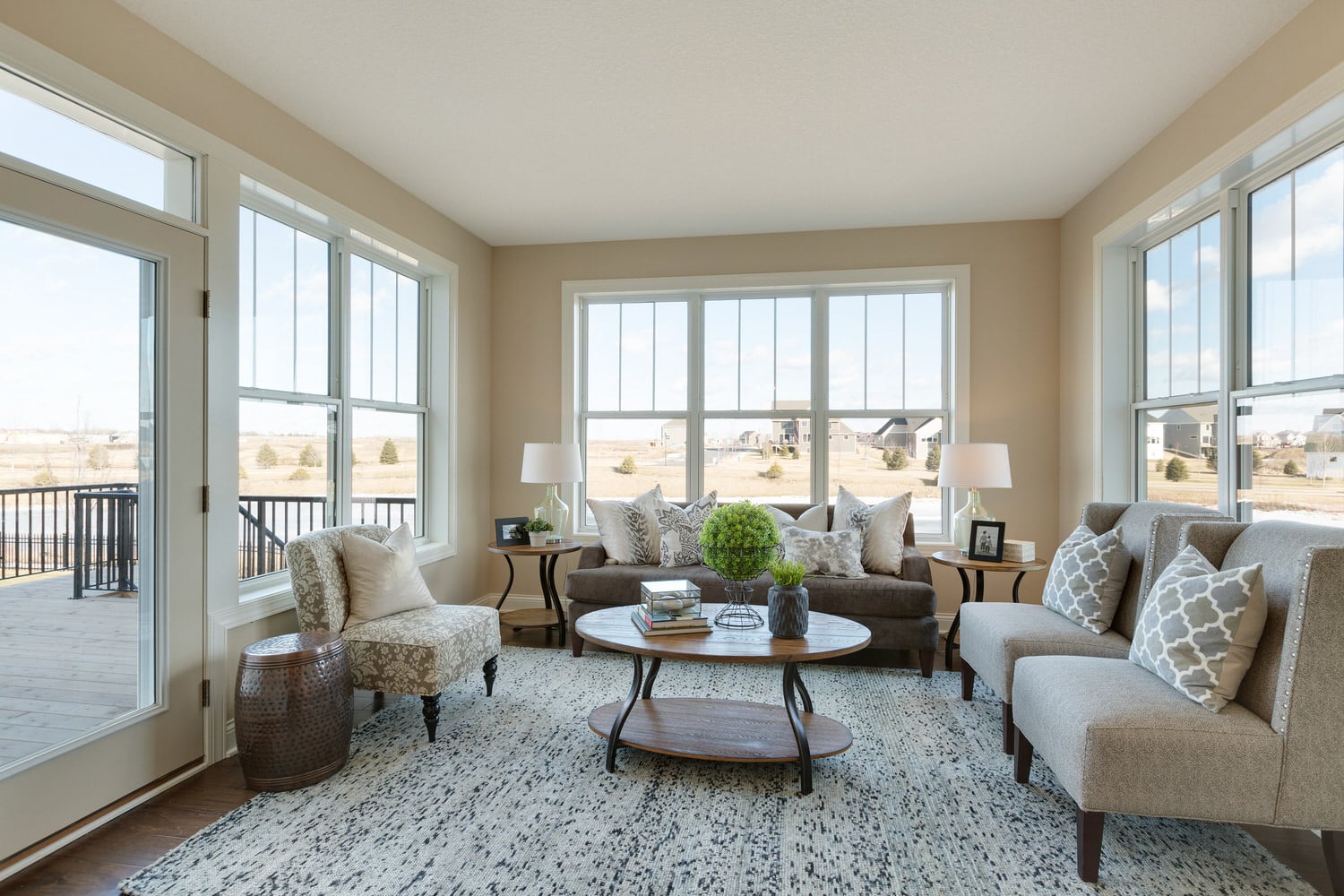 - Optional finished lower level with family room, 2 bedrooms, bath, and storage space