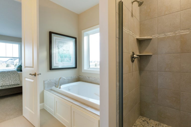 - Optional owner’s suite box ceiling vault, and extended shower in bath