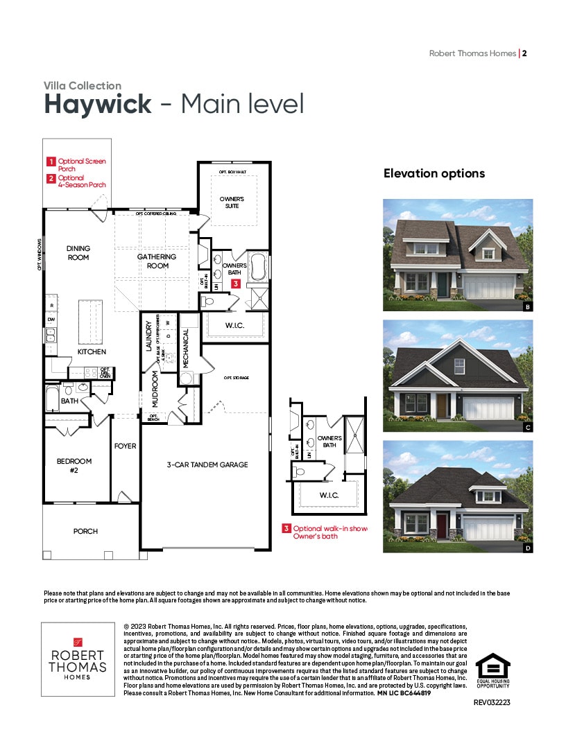 - Optional large walk-in shower at owner’s bath