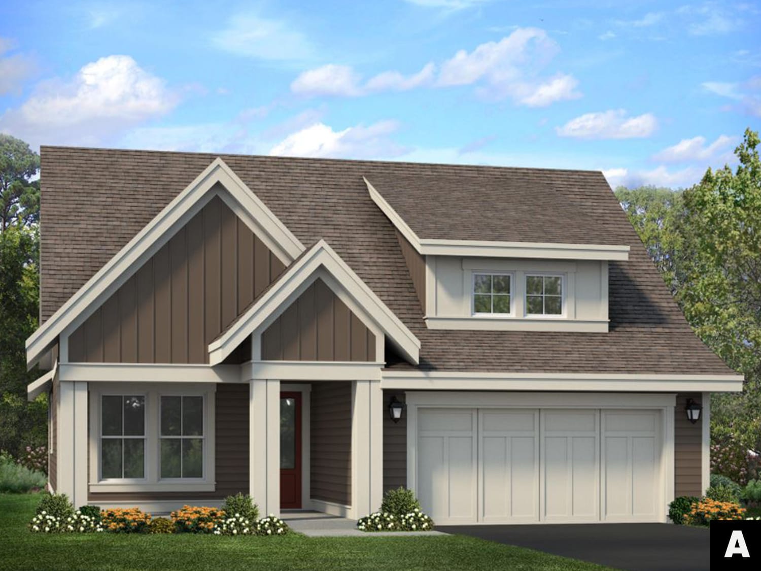 - LP SmartSide® prefinished siding with 4-sided architectural detail, including wrapped windows and trim boards