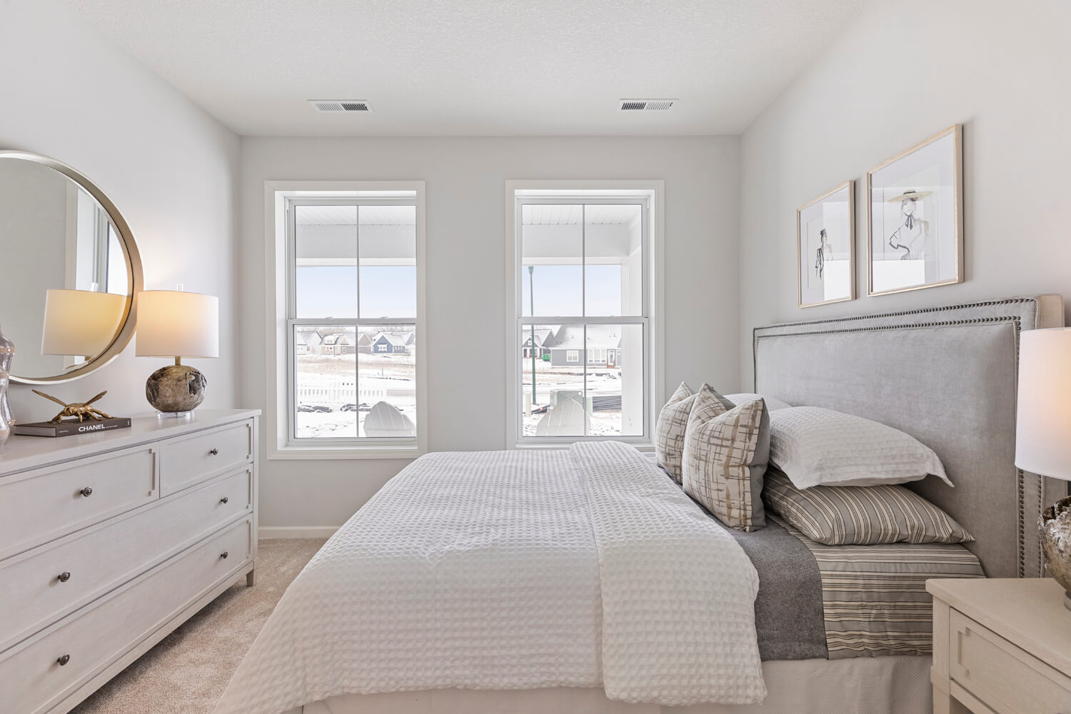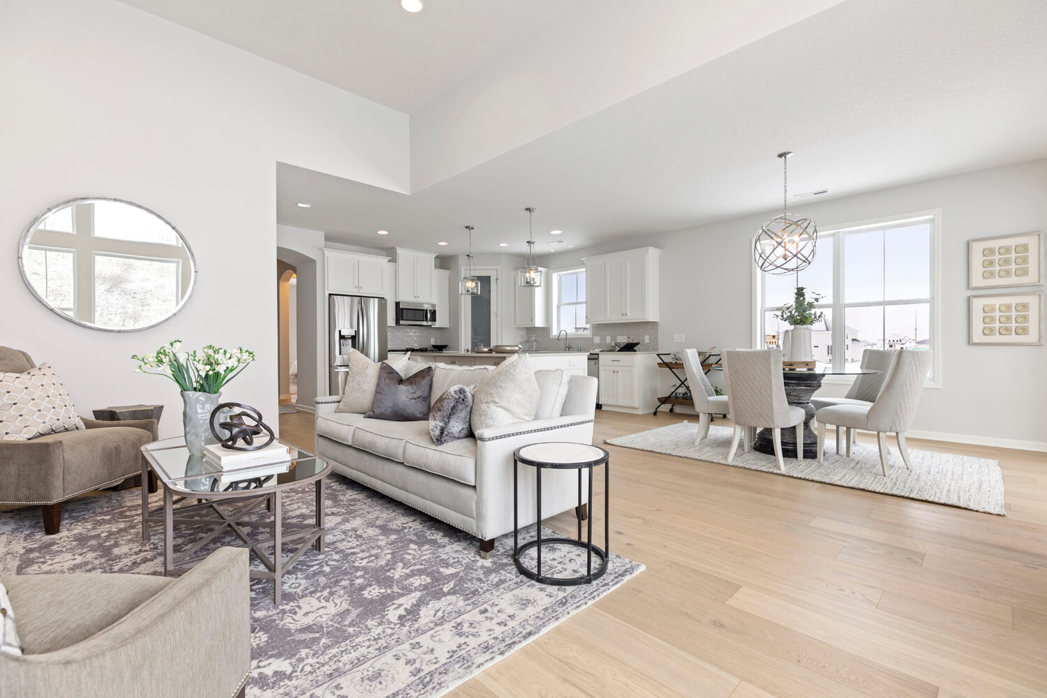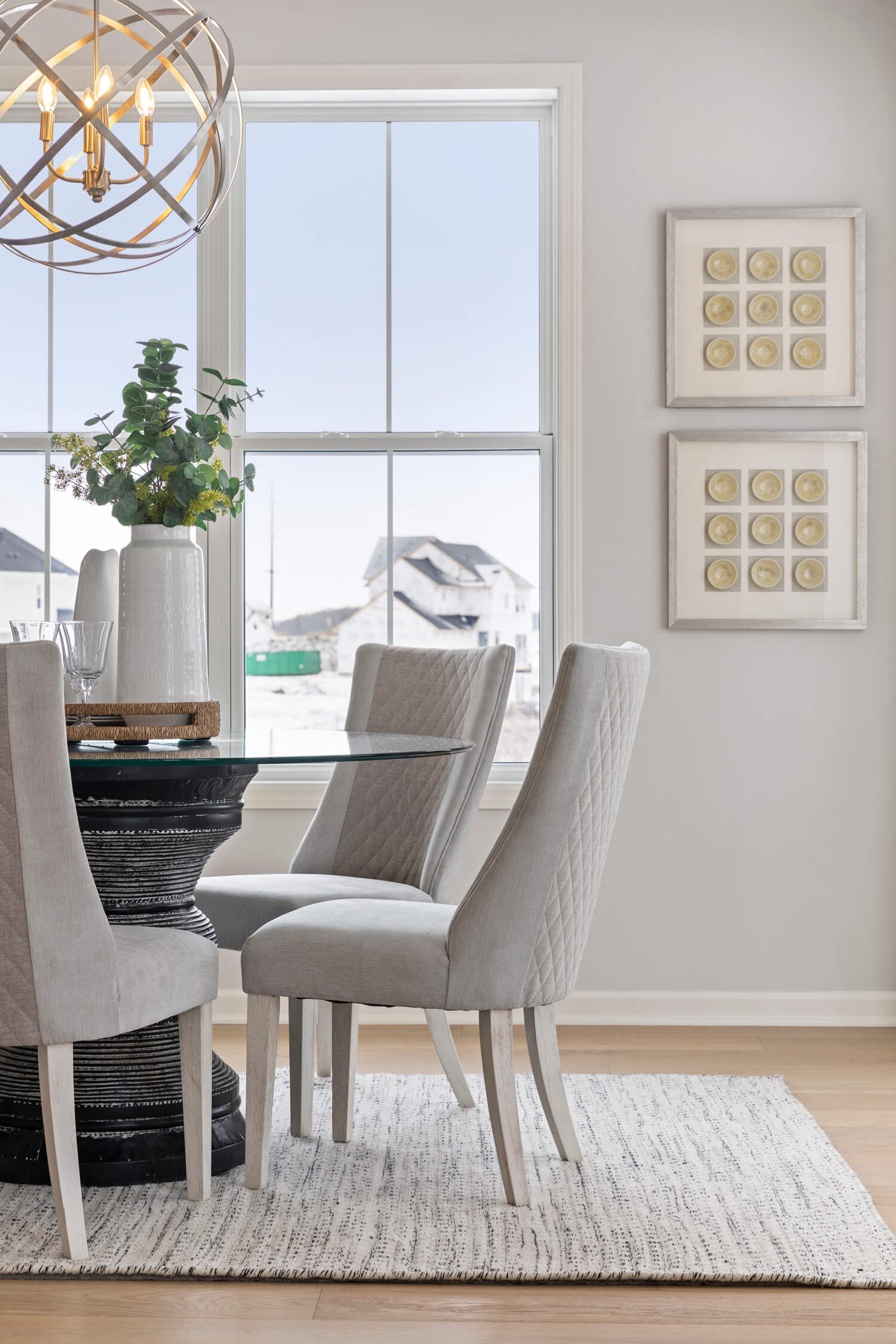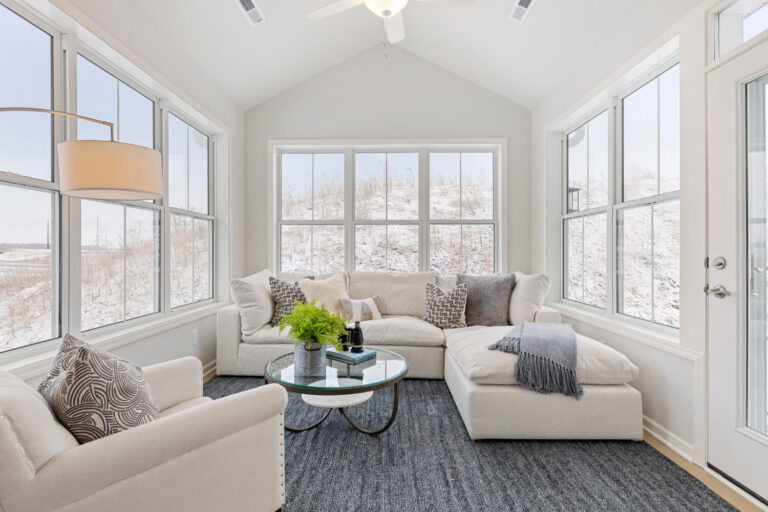 - Dramatic 12’ ceiling in gathering room with wall of windows and optional coffered ceiling