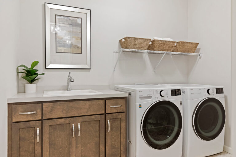 - Convenient main level laundry with optional access to owner’s walk-in closet