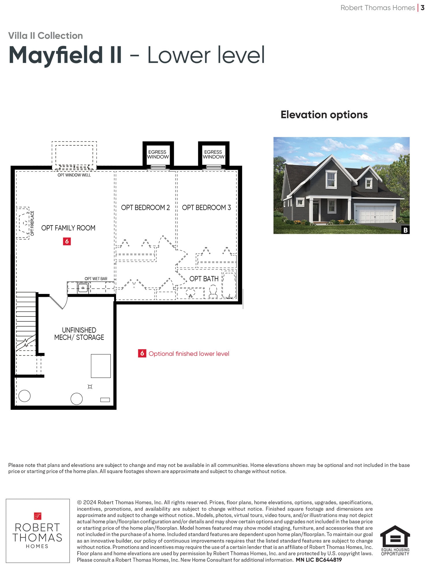 - Optional finished lower level with family room, 2nd & 3rd bedroom and bathroom