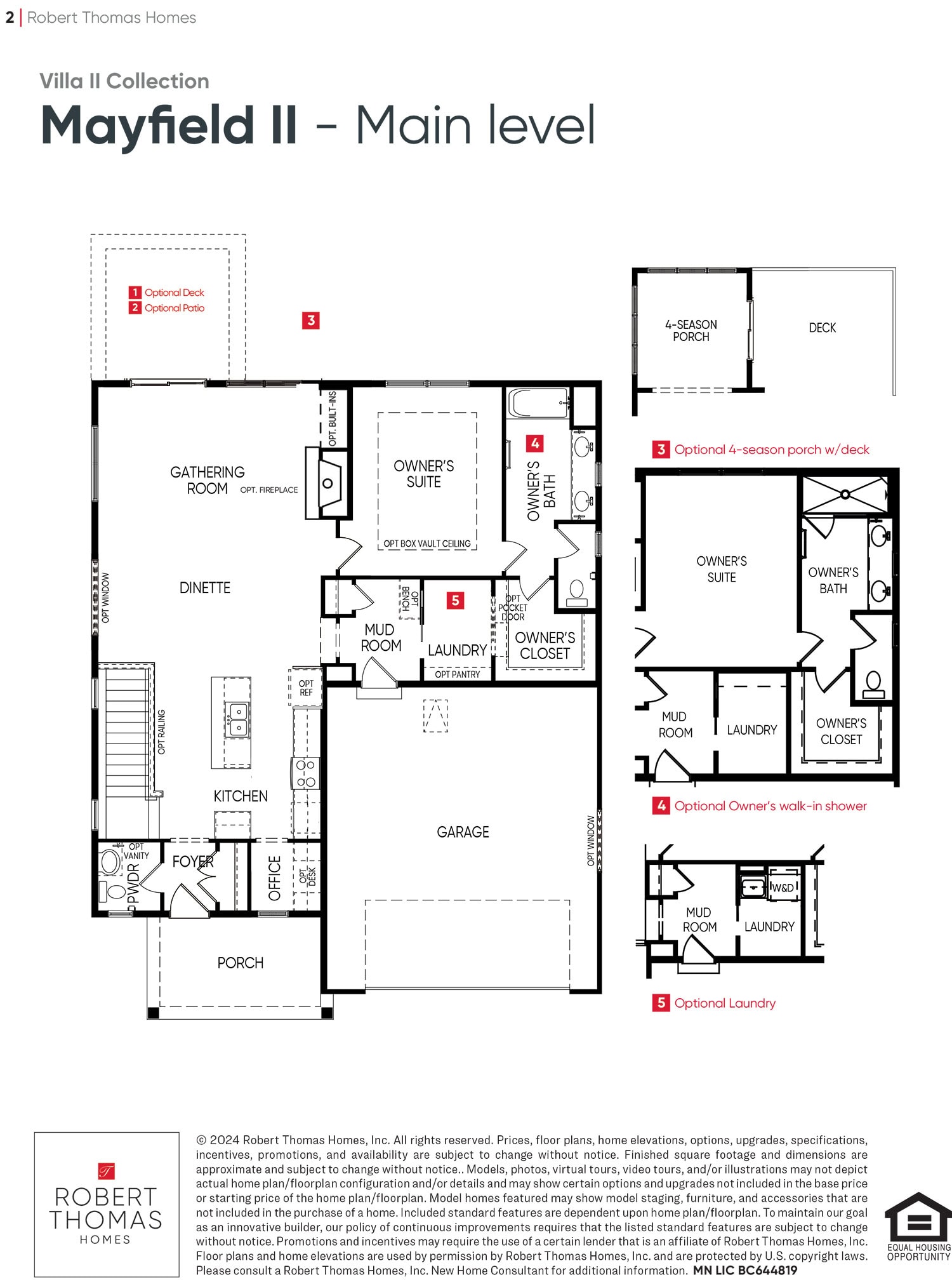 - Open dining with sliding patio door to optional four-season porch, deck or patio
