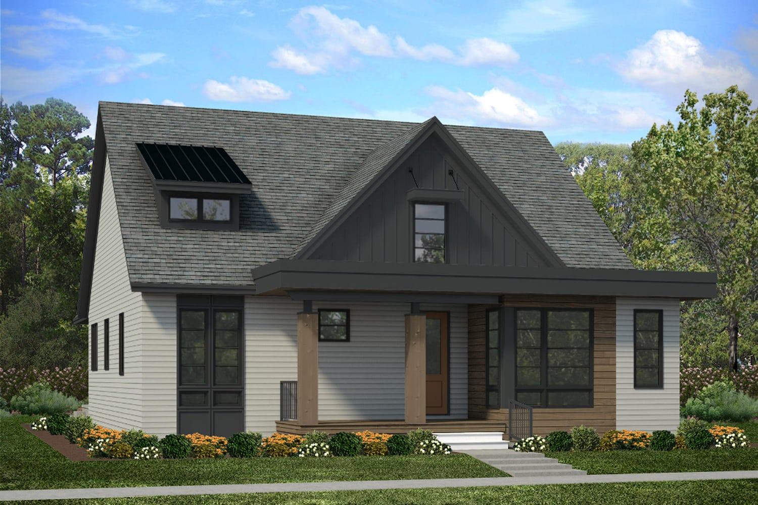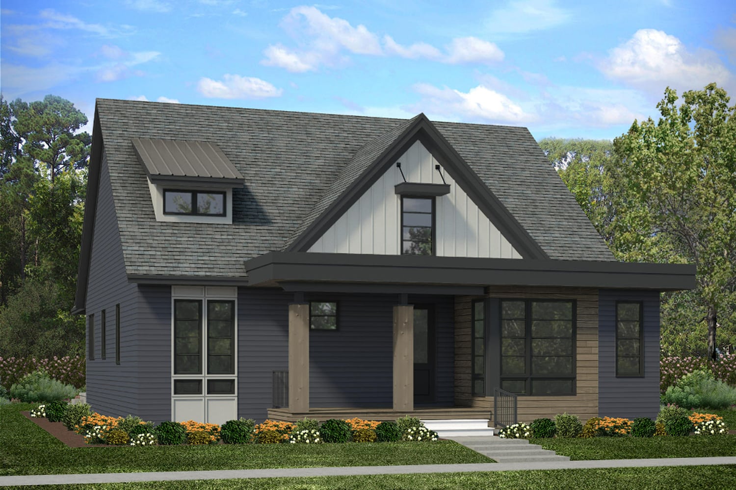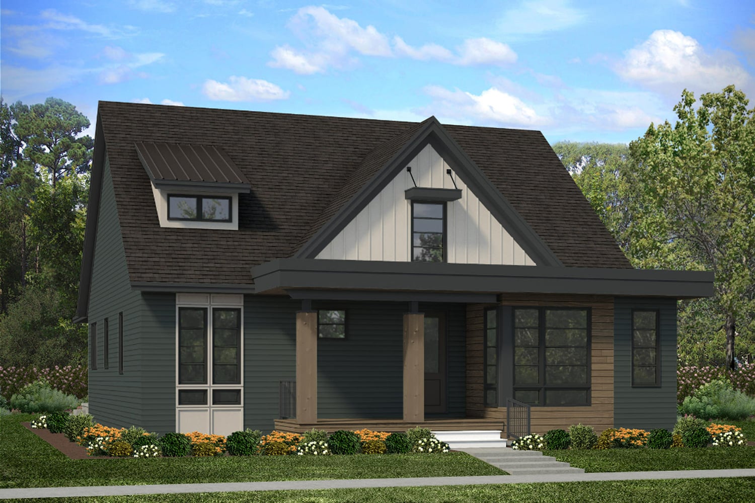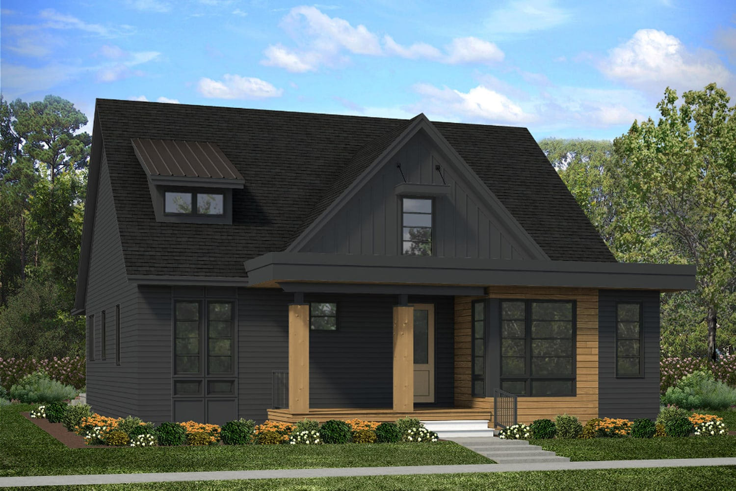 - James Hardie® pre-finished siding with 4-sided architecture detail including wrapped windows and trim boards
